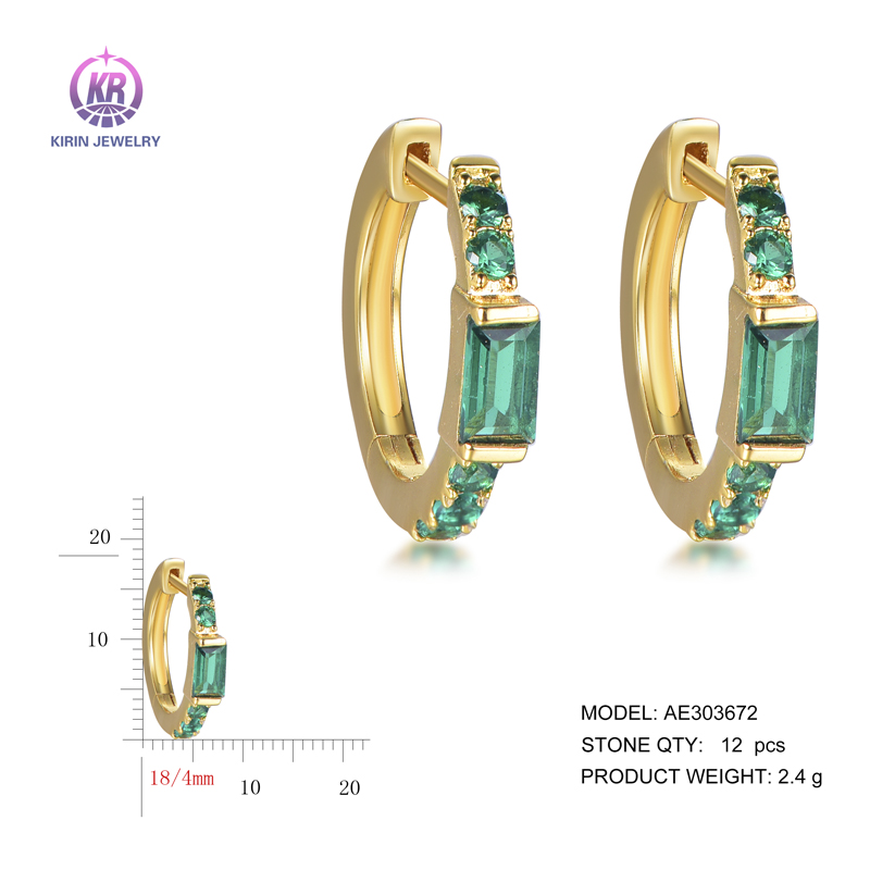 baguette hoop earrings with 14K gold plating emerald CZ AE303672