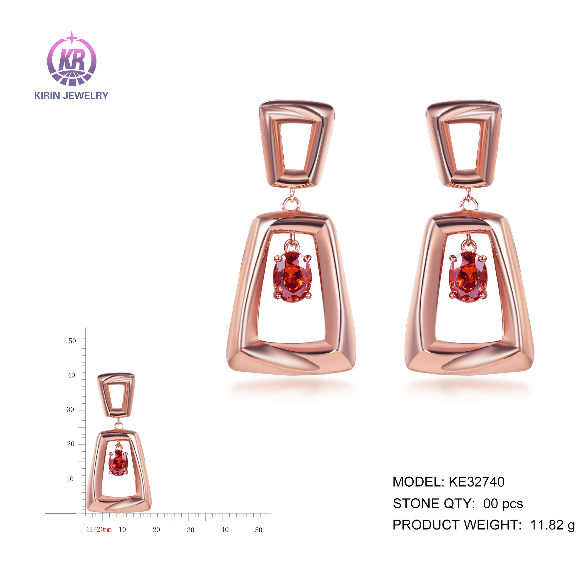 drop earrings with rose gold plating ruby CZ KE32740 (2)