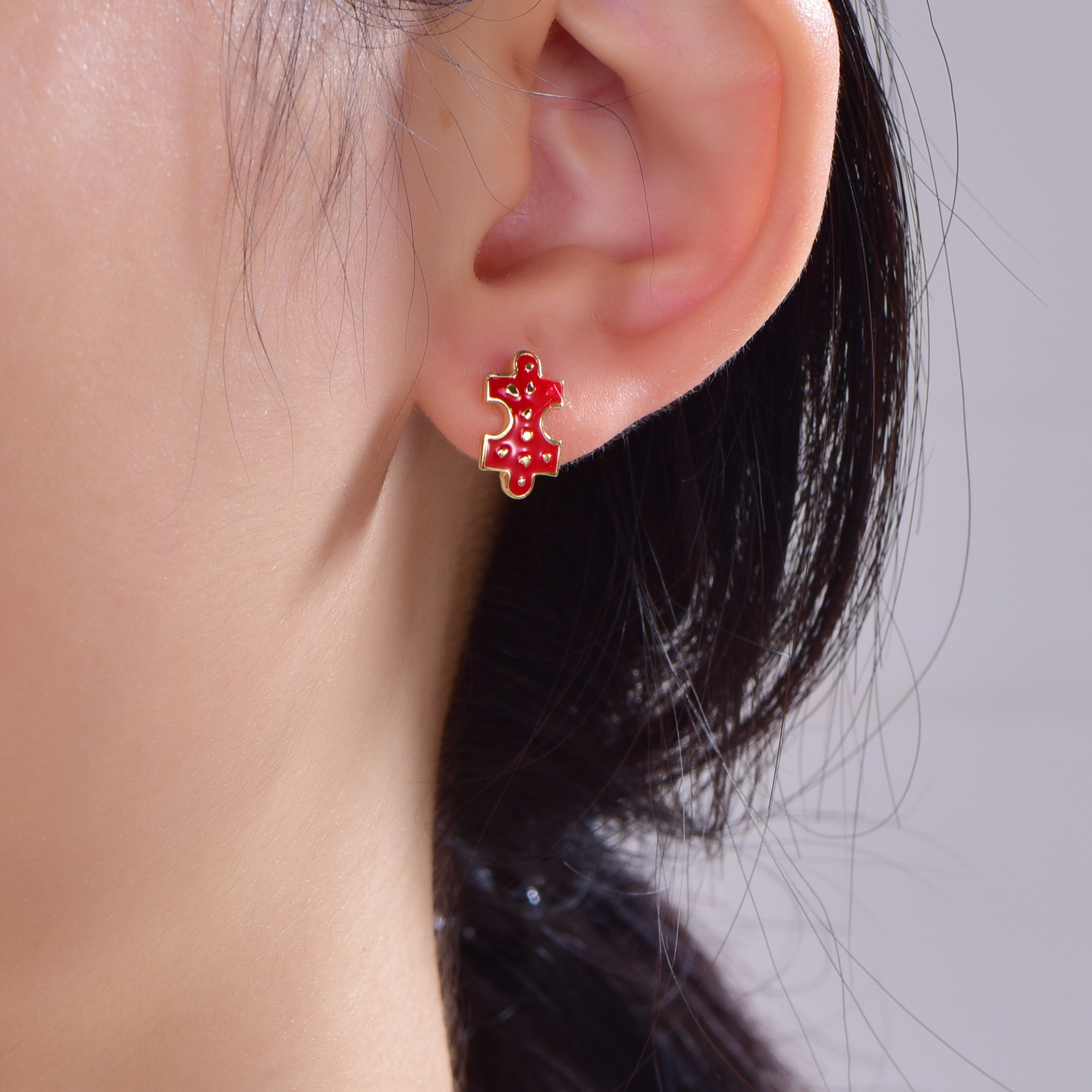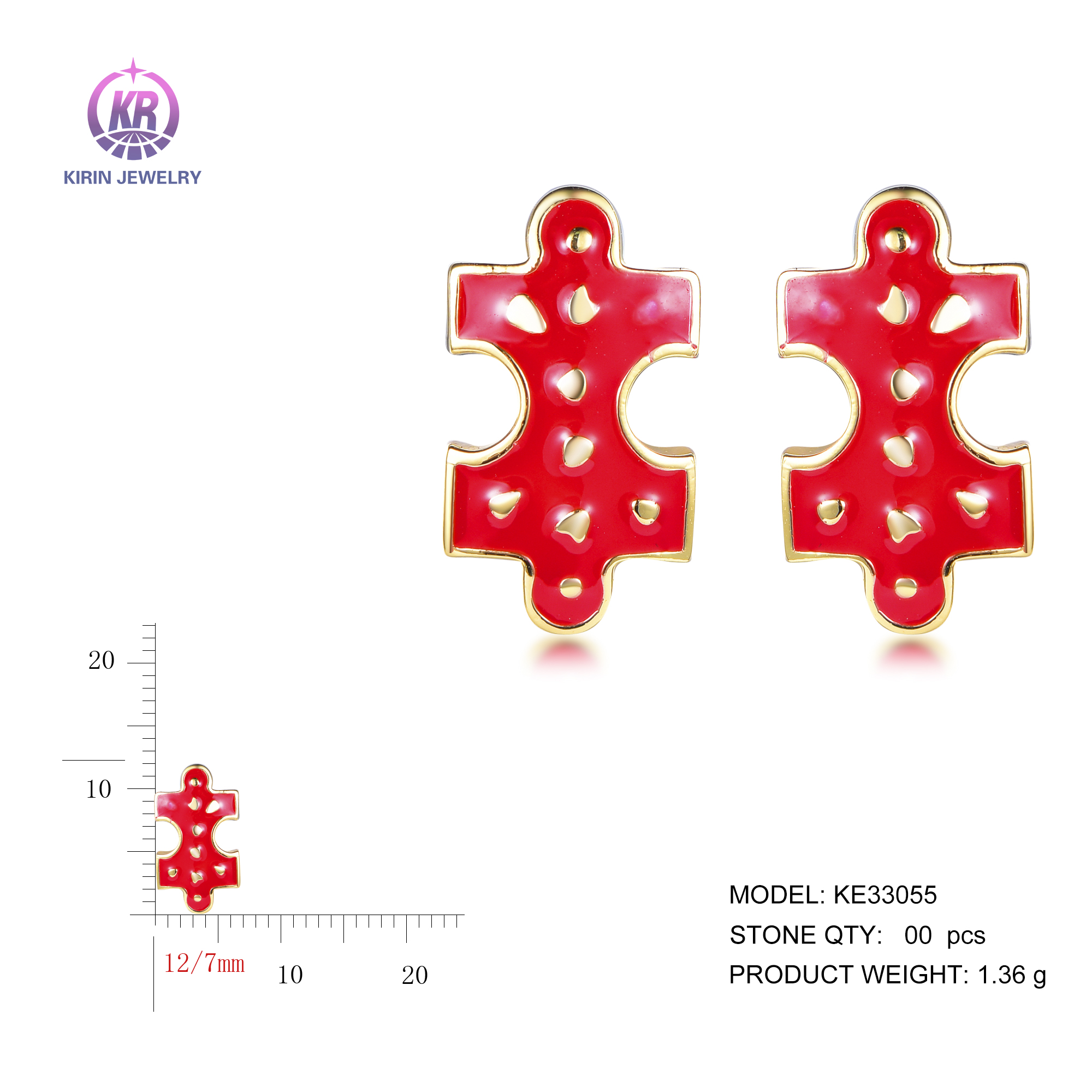 enamel stud earrings with 14K gold plating KE33055