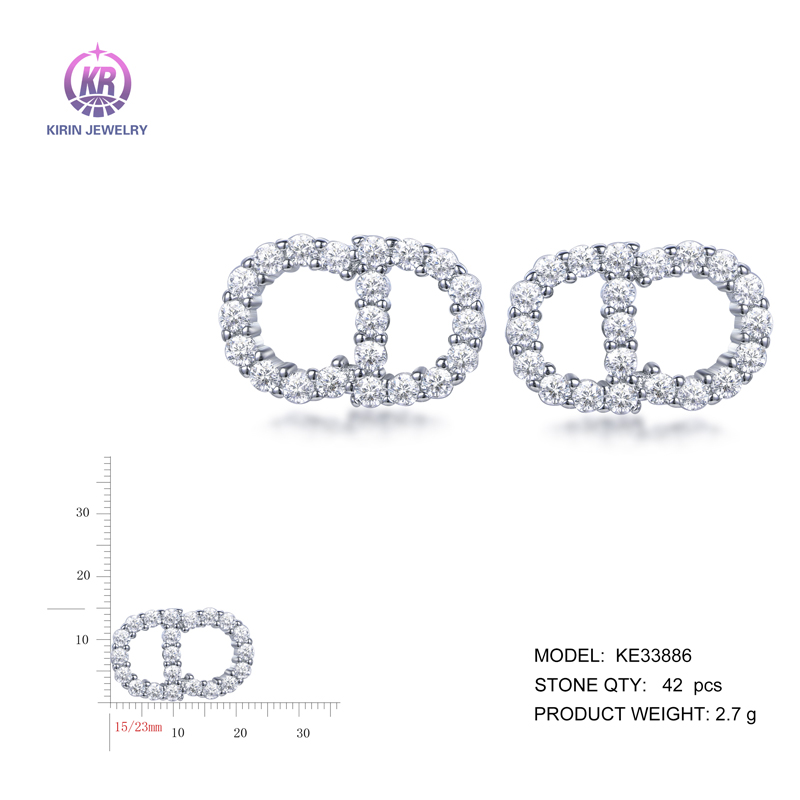 stud earrings with rhodium plating CZ KE33886