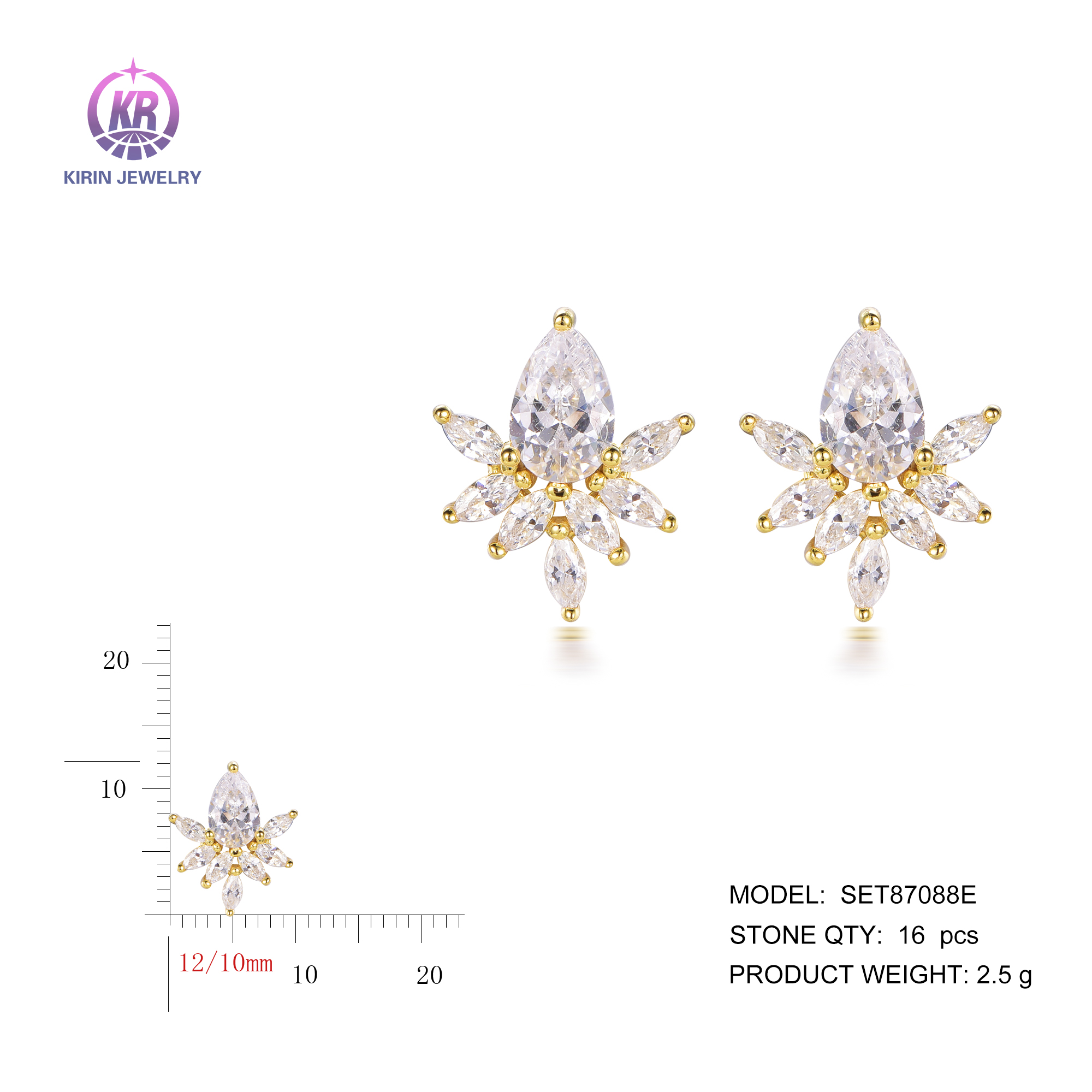 stud earrings with 14K gold plating CZ SET87088E