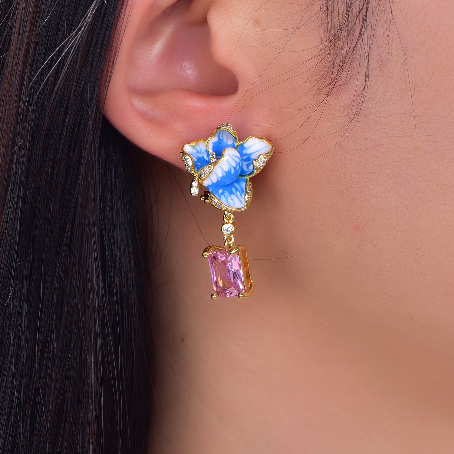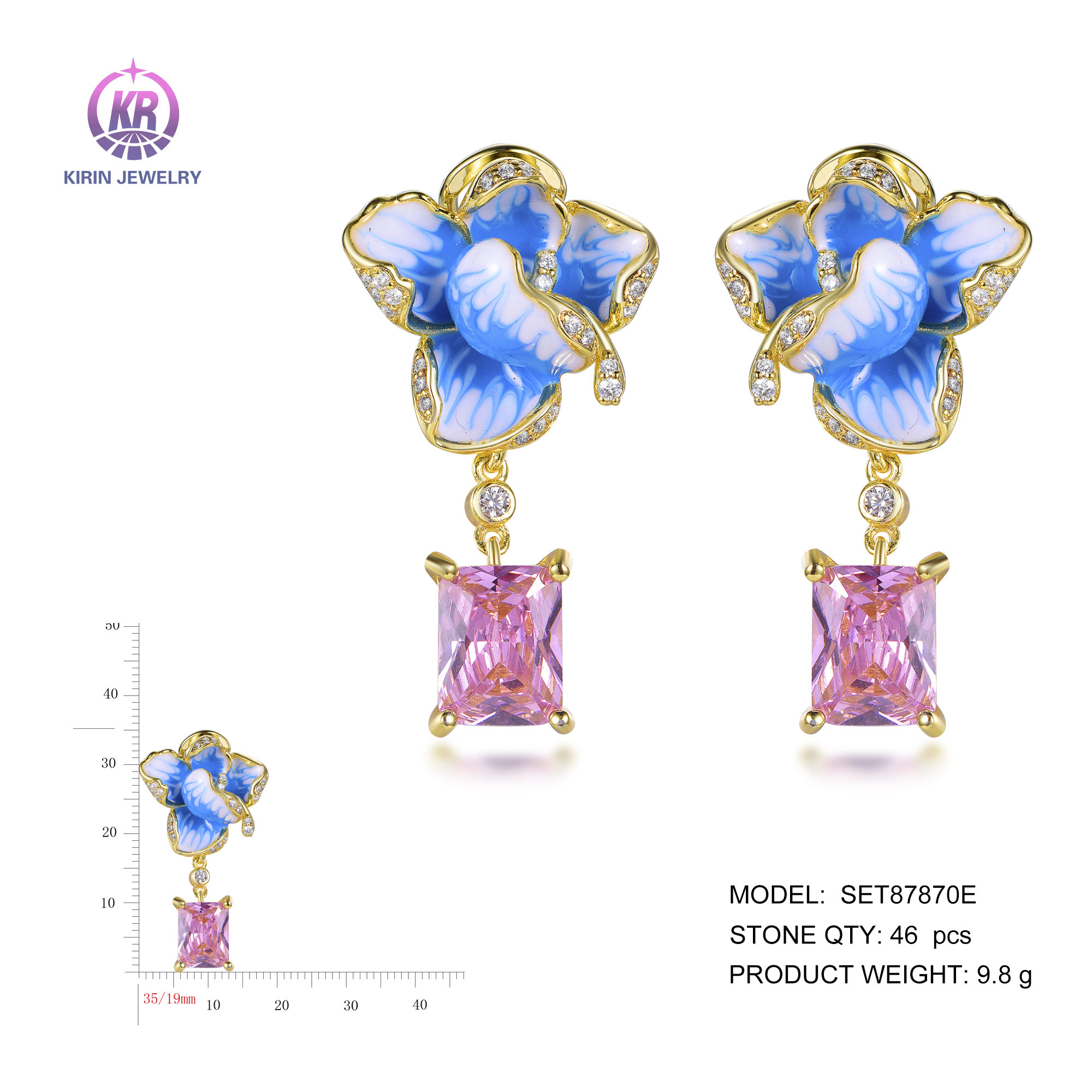 flower earrings with rhodium plating pink CZ SET87870E
