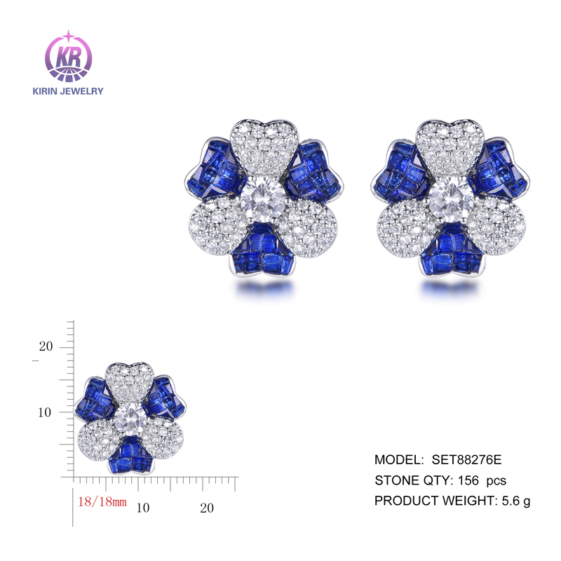 flower earrings with rhodium plating sapphire CZ SET88276E (3)