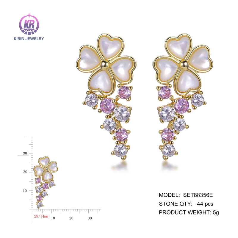 flower white shell earrings with 14K gold plating color CZ SET88356E