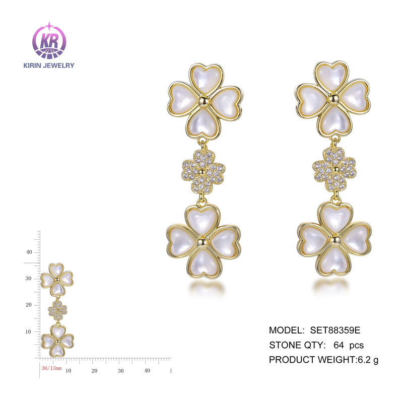 flower white shell earrings with 14K gold plating CZ SET88359E