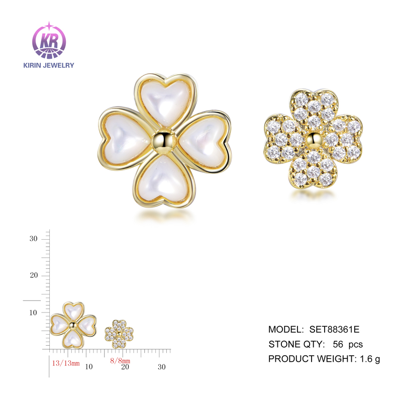 flower white shell stud earrings with 14K gold plating CZ SET88361E