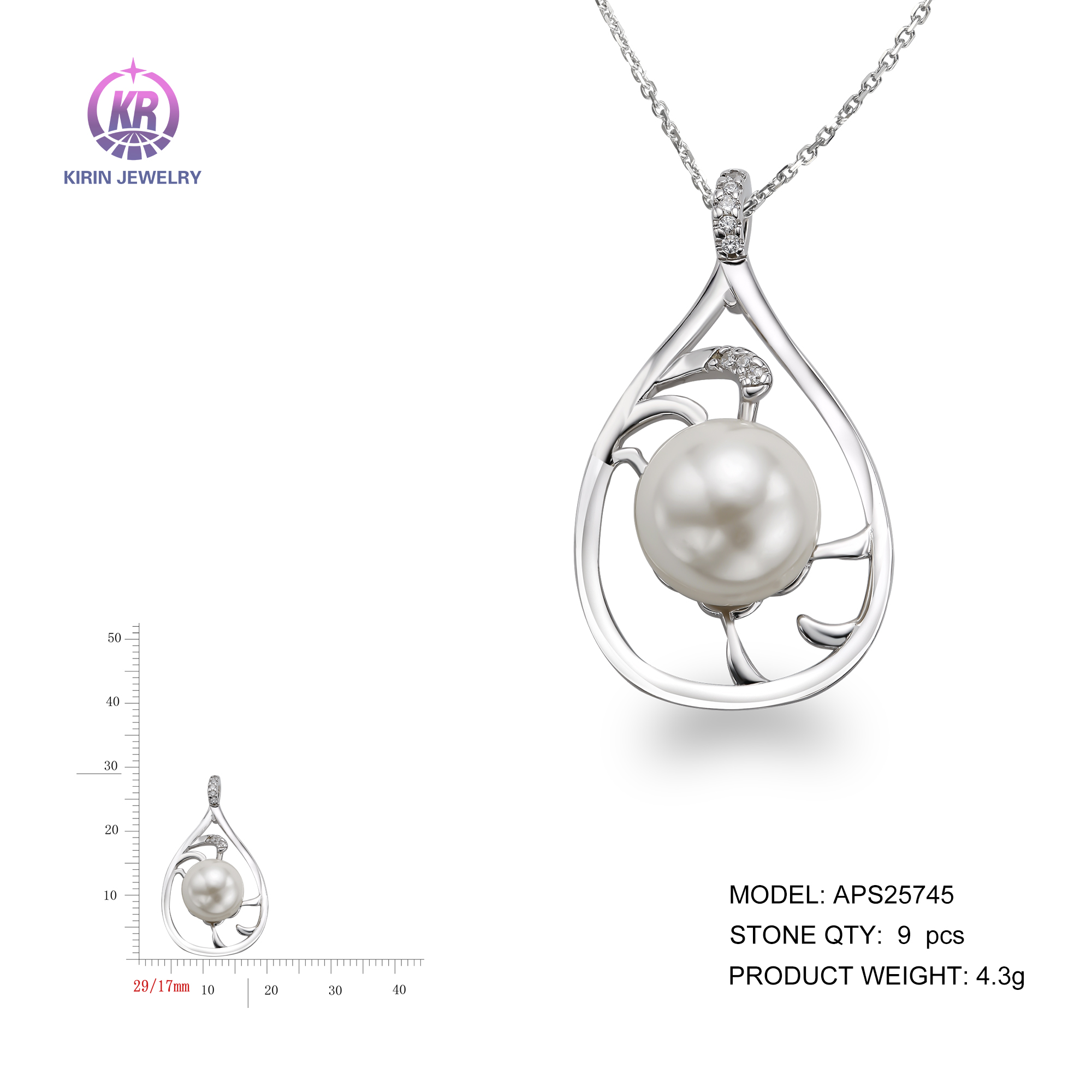 925 silver pendant with rhodium plated cz 25745