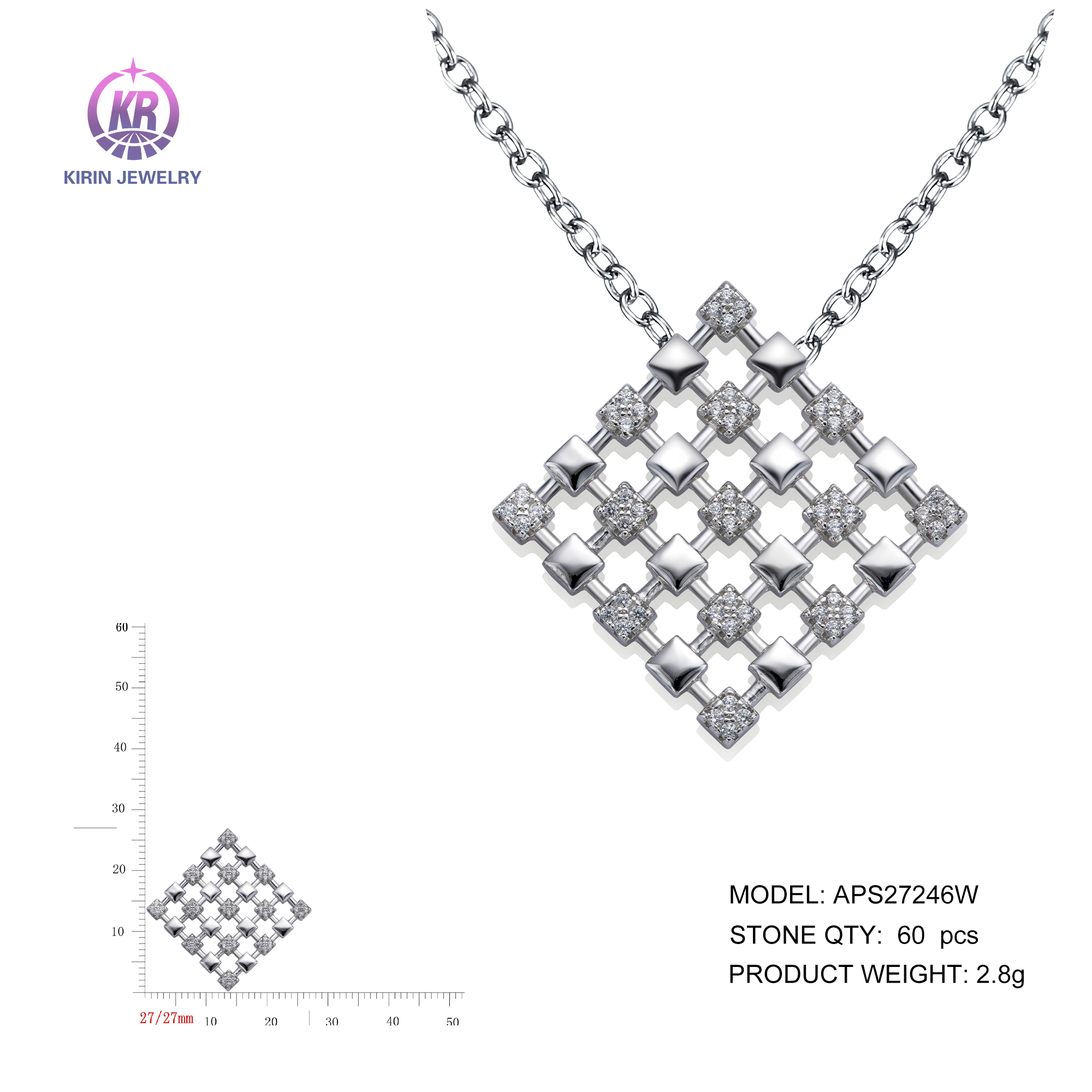 925 silver pendant with rhodium plated cz 27246W