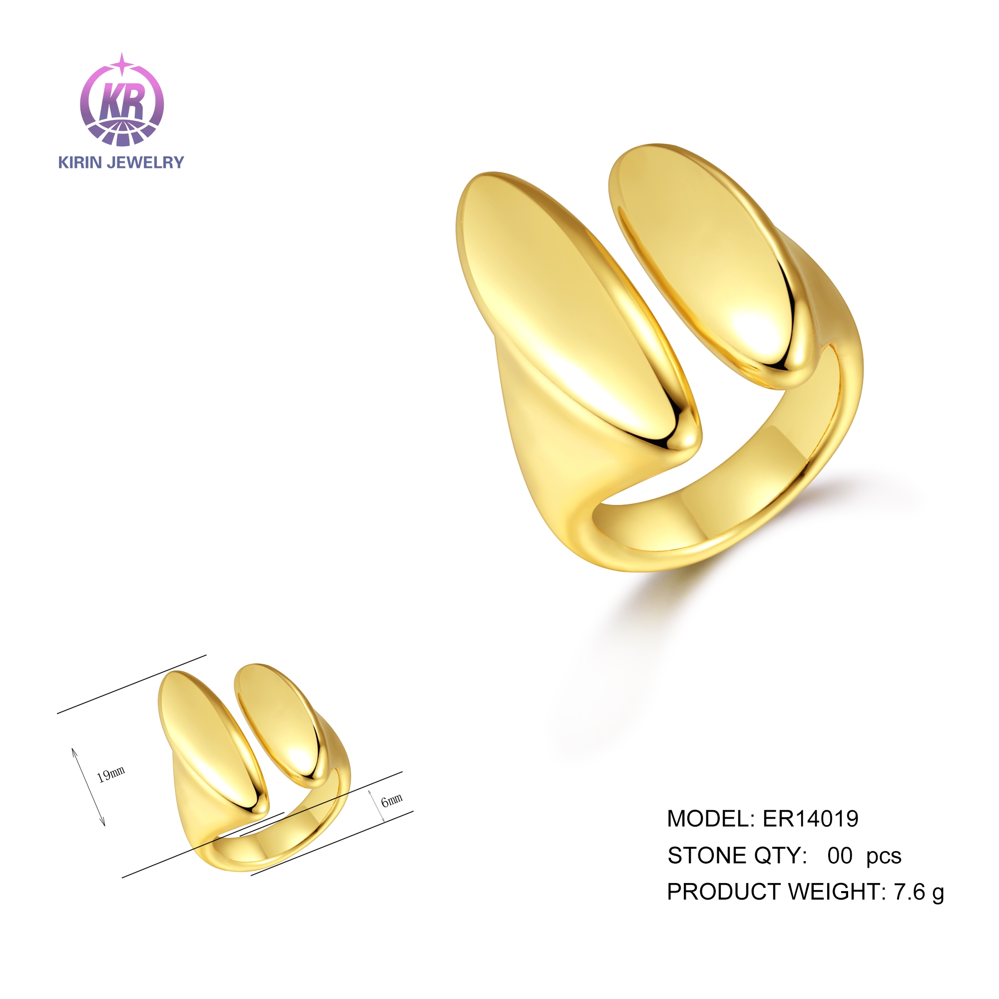 925 silver ring with 18k gold plated 14019