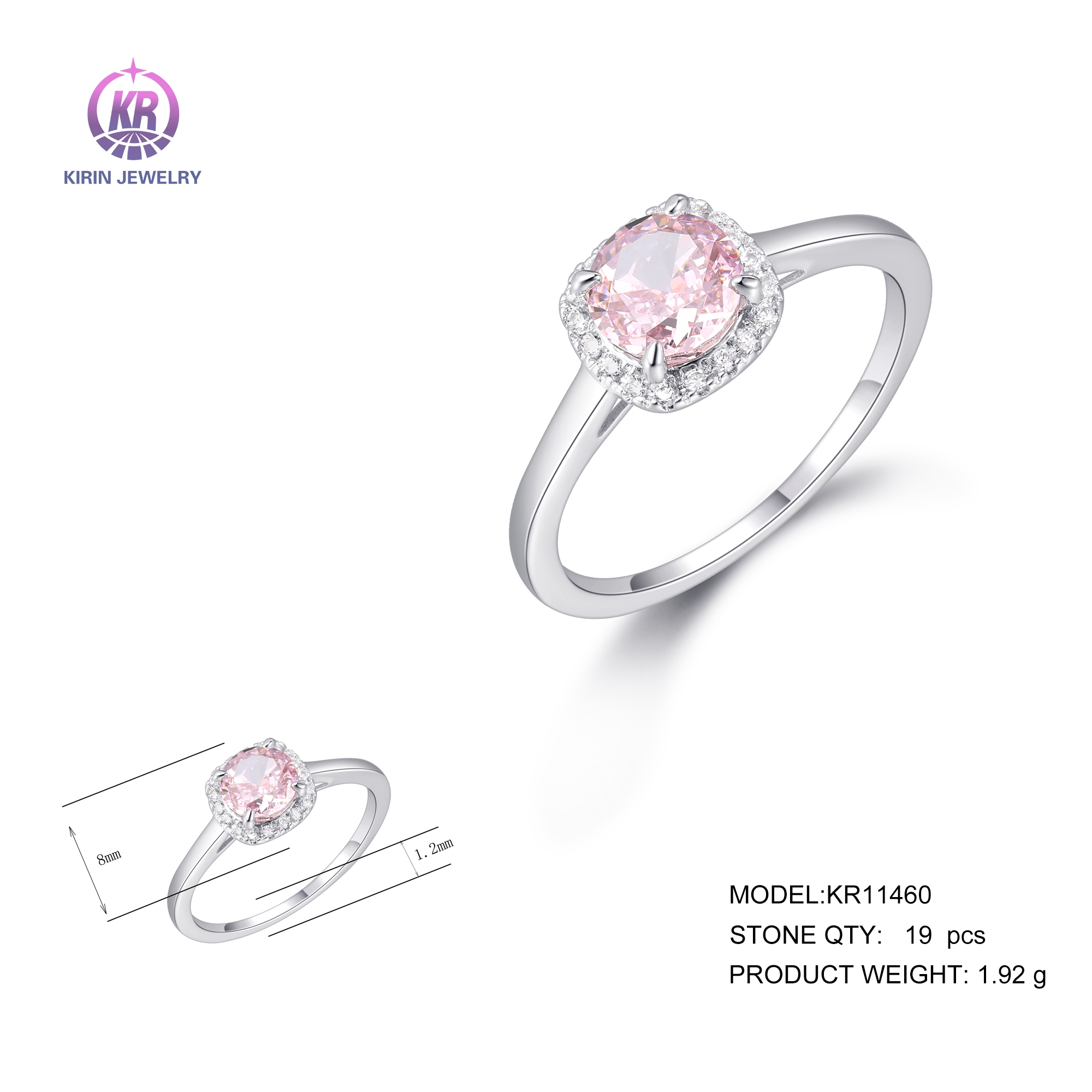 925 Sterling silver ring with rhodium plated pink cz 11460