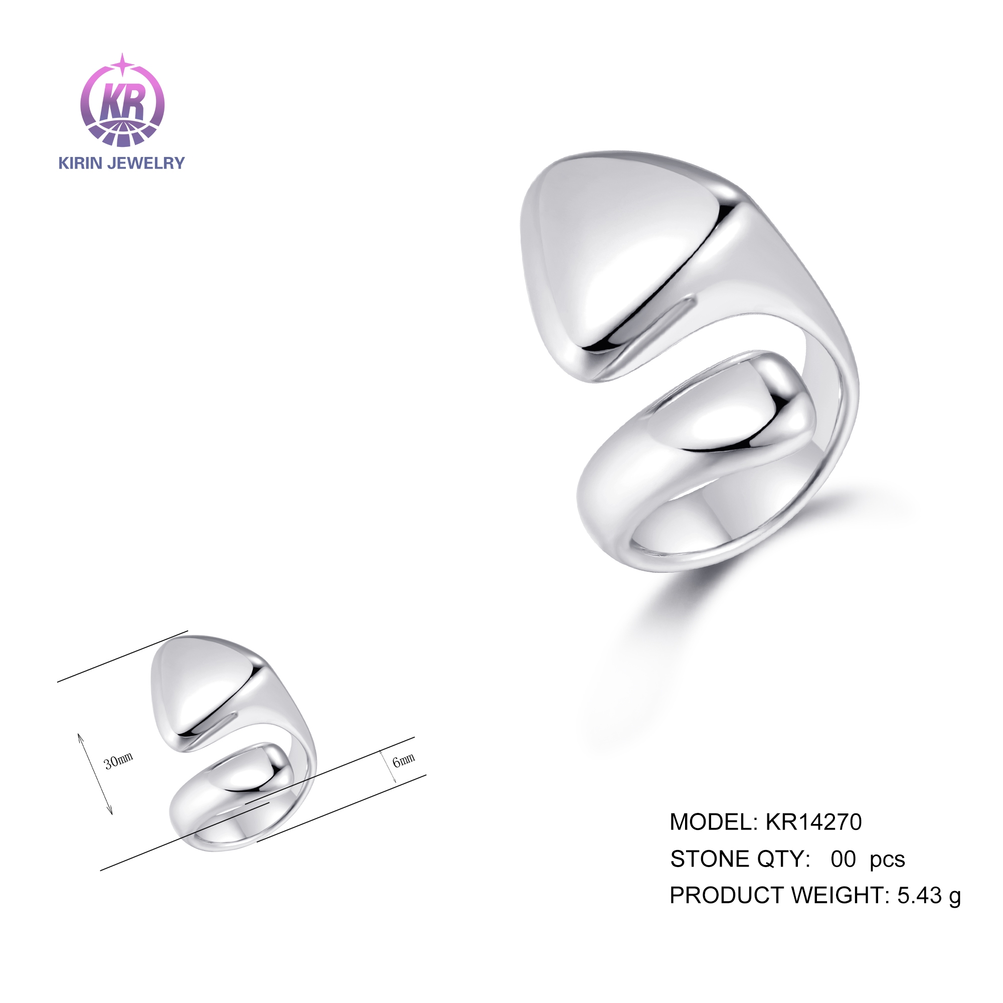 925 sterling silver ring with rhodium plated 14270