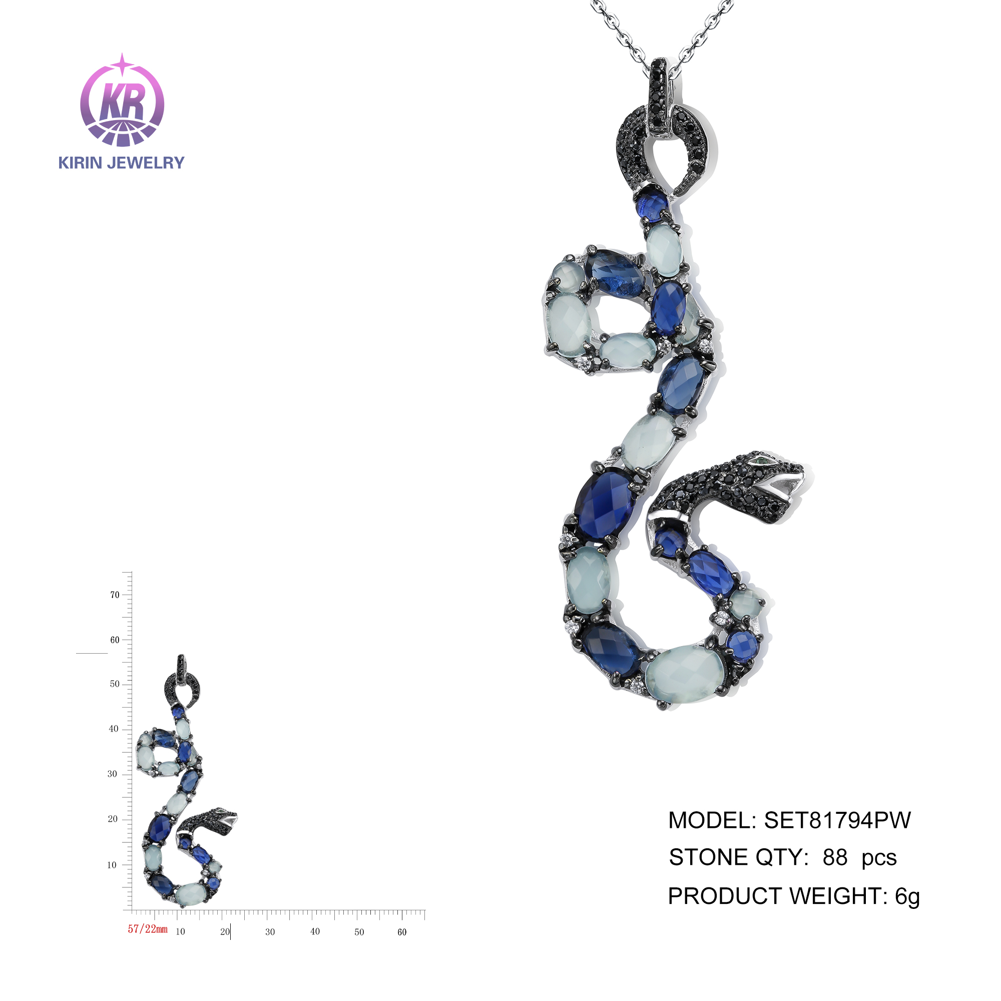 925 Sterling silver snack pendant with rhodium plated Light Sapphire Blue cz 81794PW
