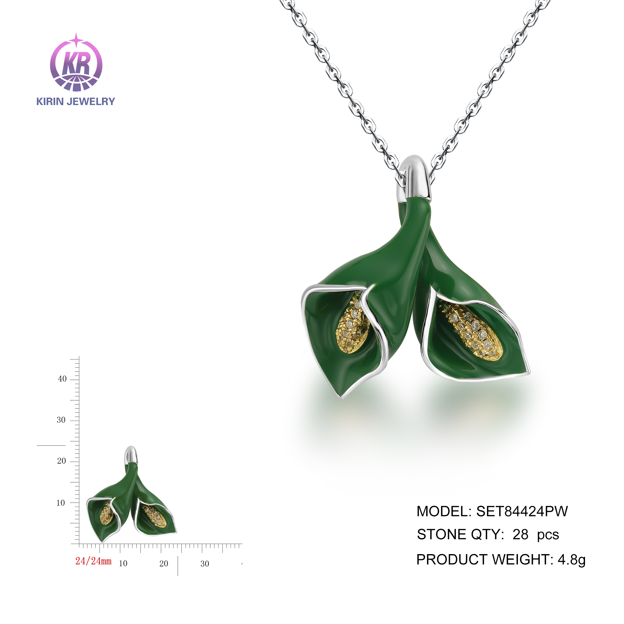 925 Sterling silver leaves pendant with rhodium plated cz 81794PW