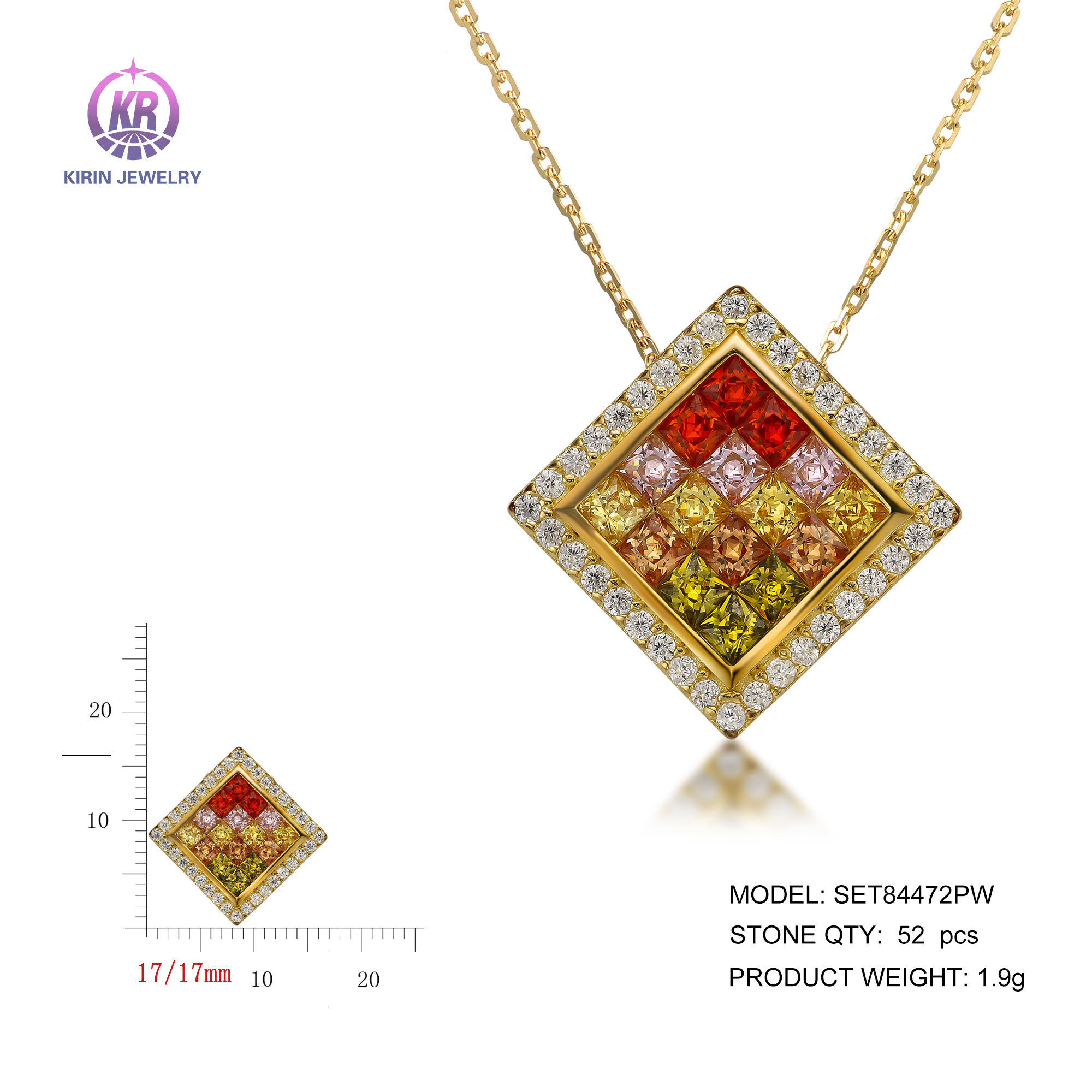 925 Sterling silver pendant with 14k gold plated colorful cz 84472PW