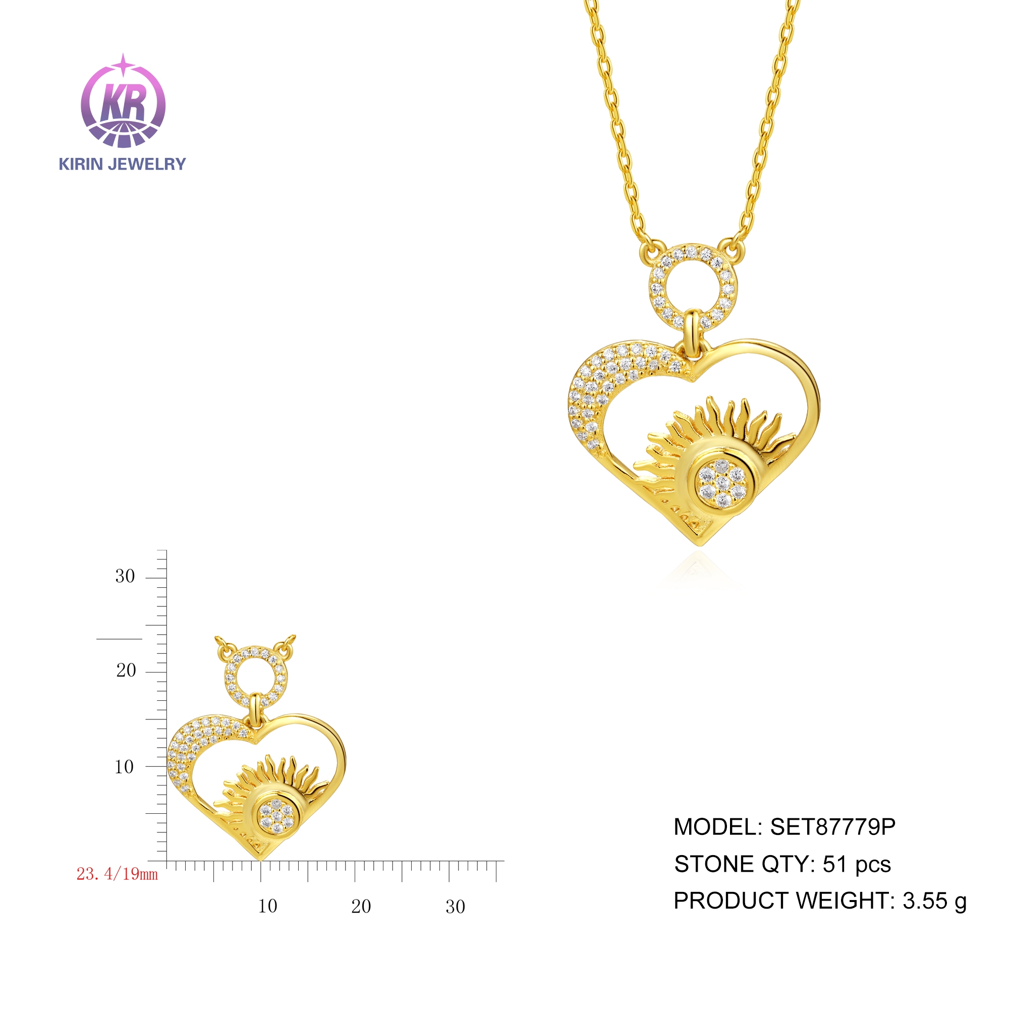 925 Sterling silver heart pendant with 14k gold plated cz 87779P