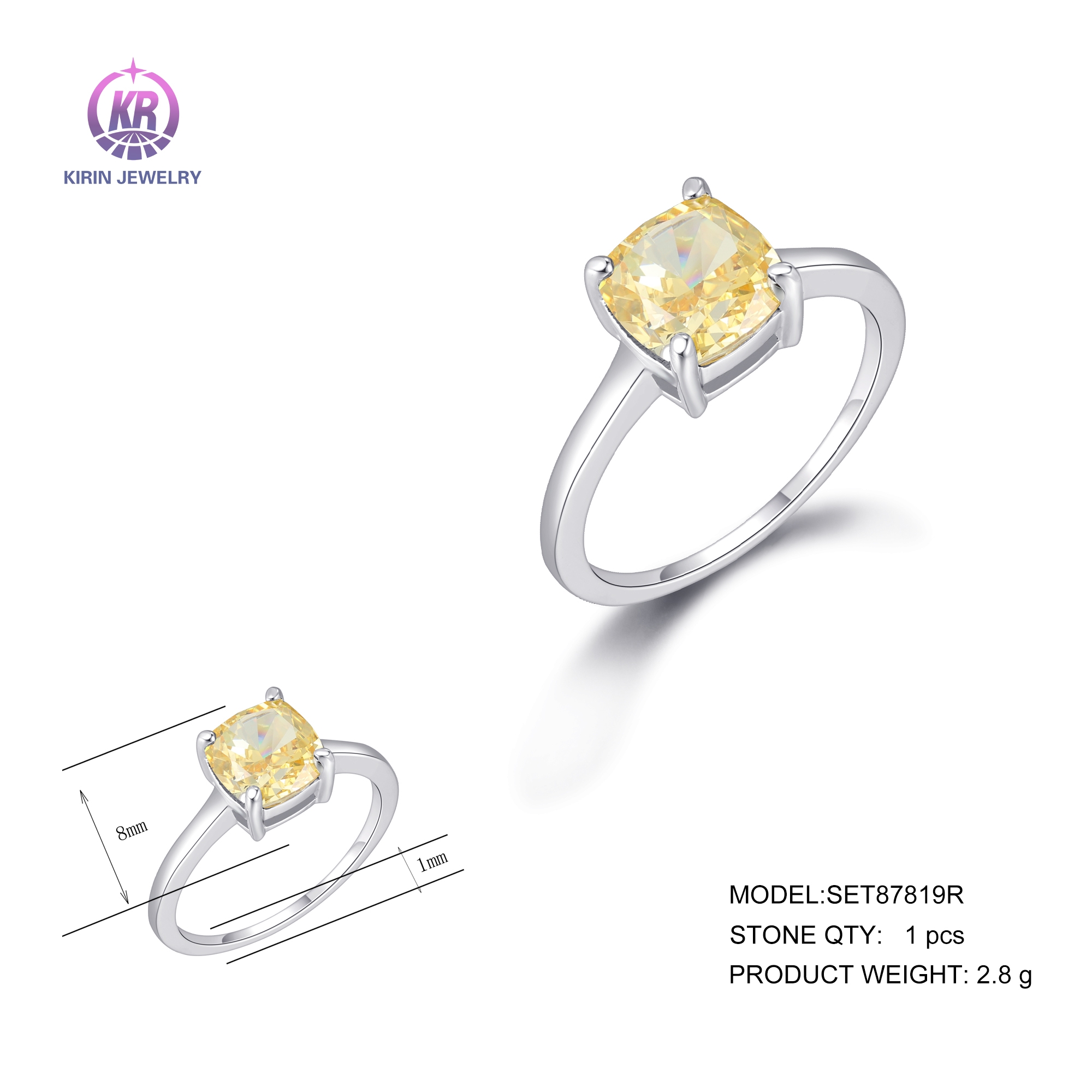 center stone Cubic Zircon&Light yellow