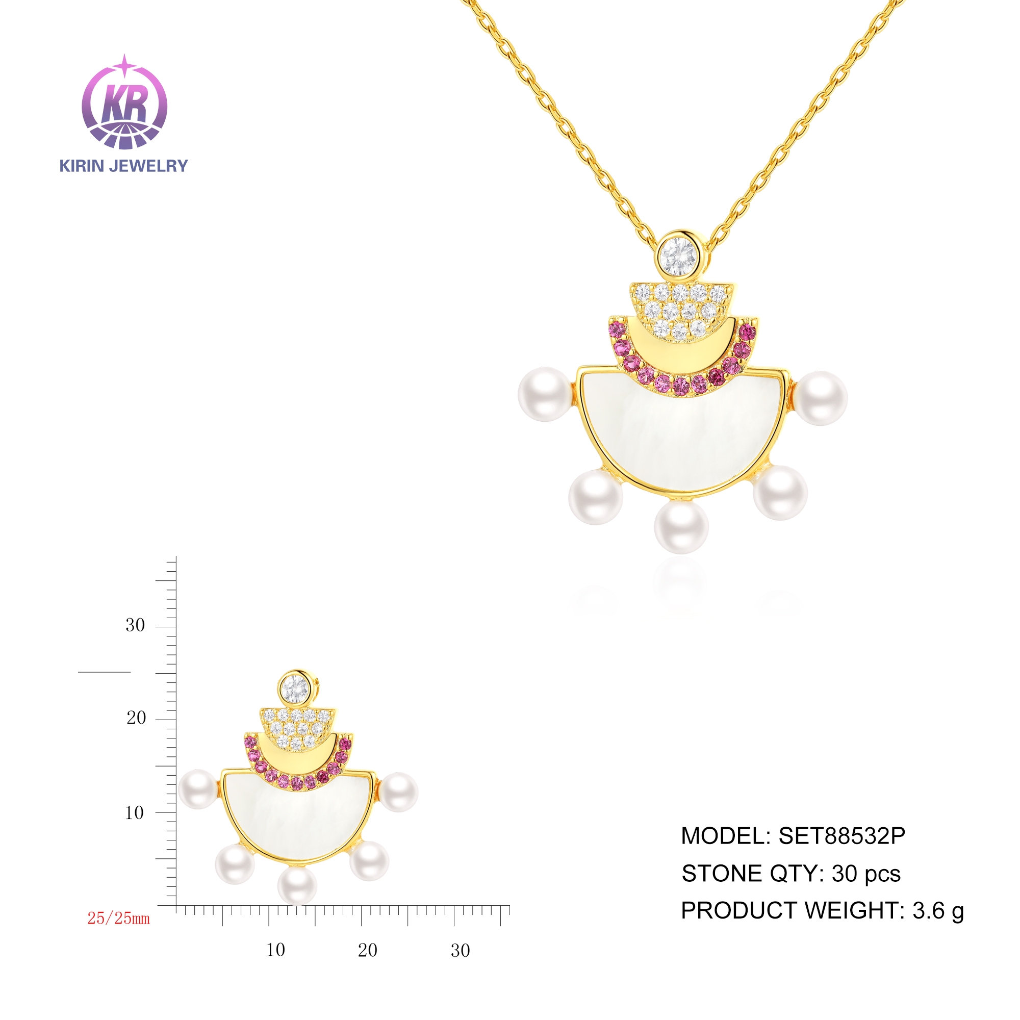 925 Sterling silver pendant with 14k gold plated mop cz 88532P