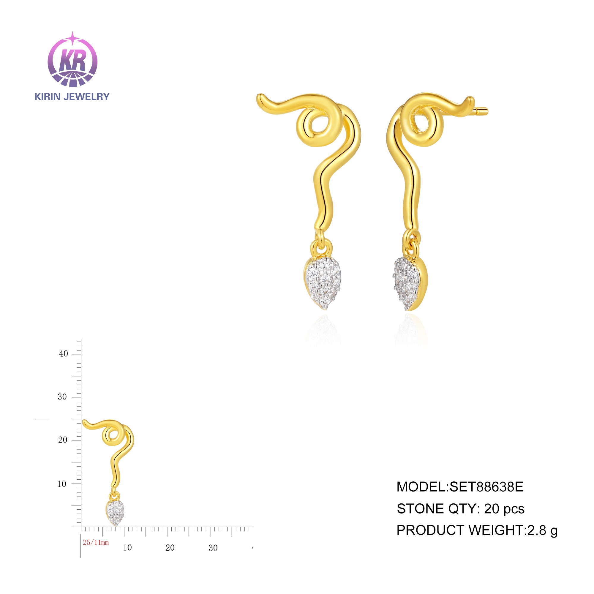 925 Sterling silver earring with 14k gold plated cz 88638E