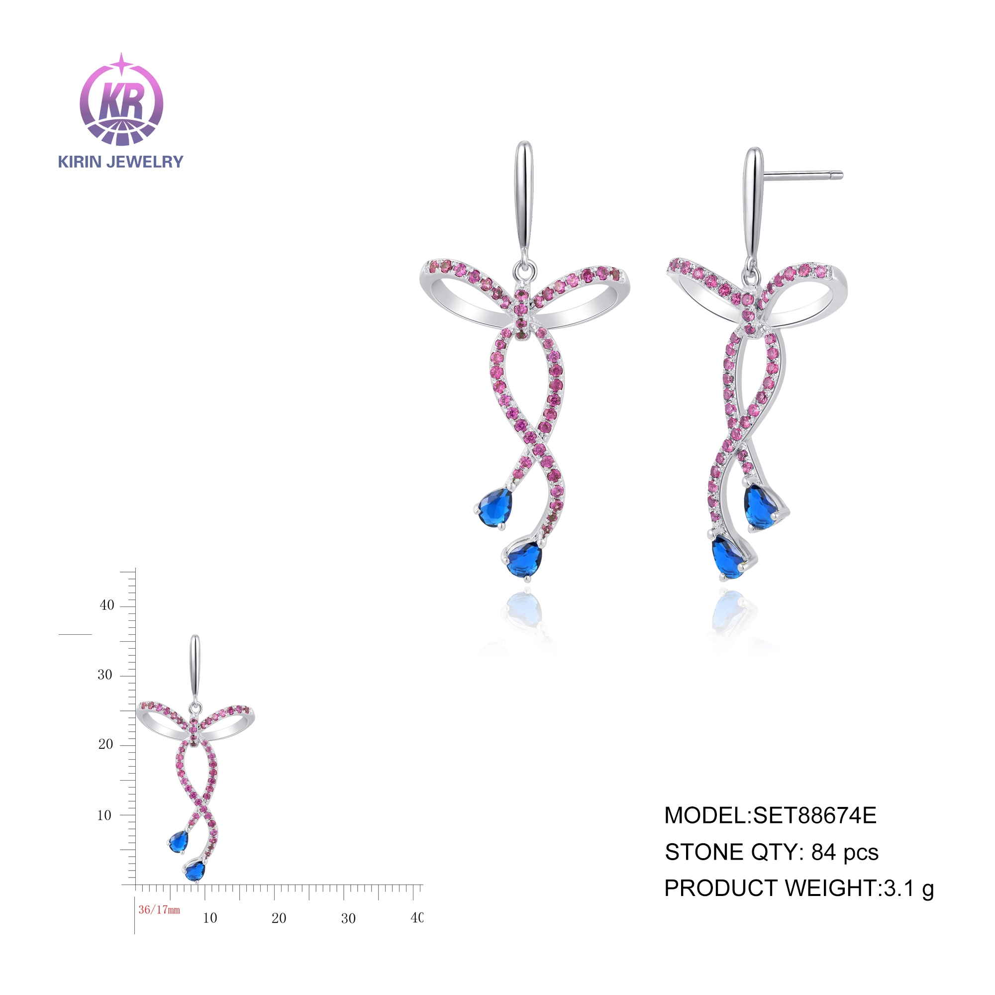 925 Sterling silver earring with rhodium plated spinel cz 88674E-1
