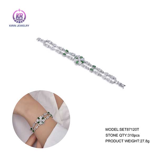 Bracelet_double chain_green spinel&white cubic zircon_87120T