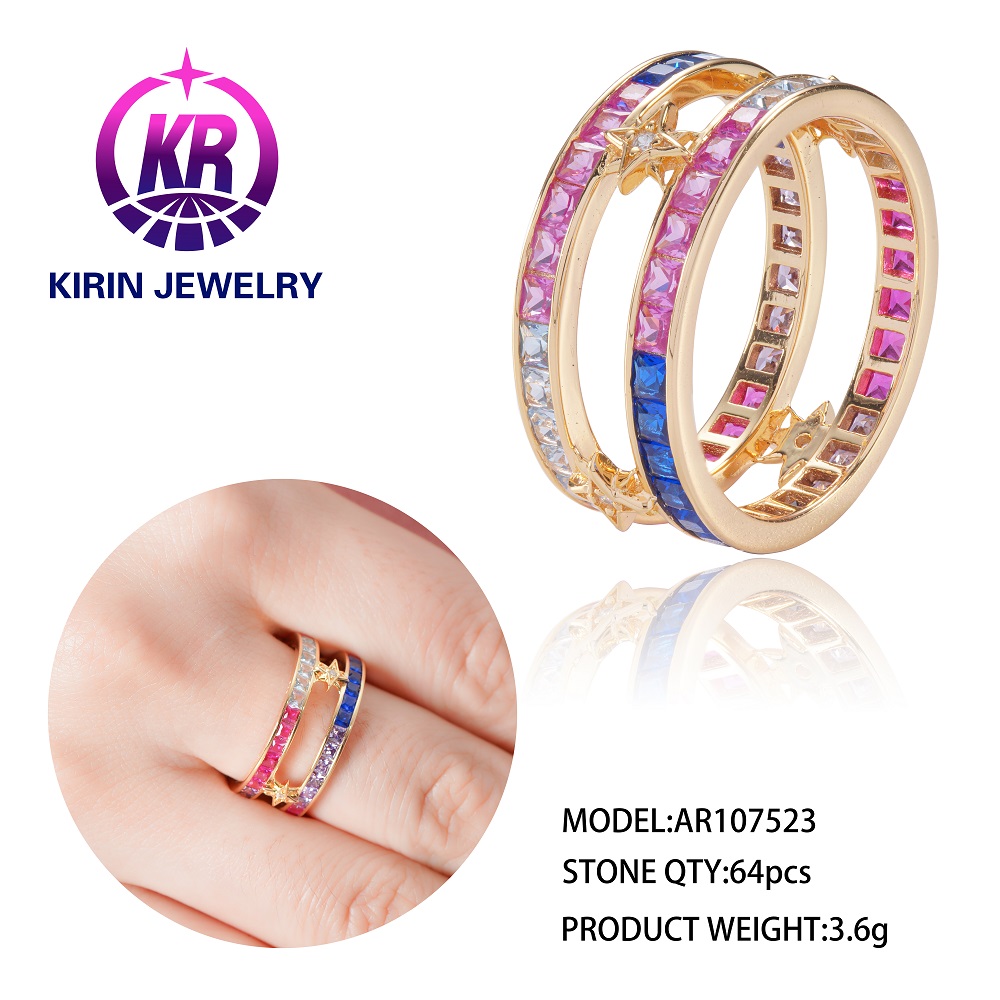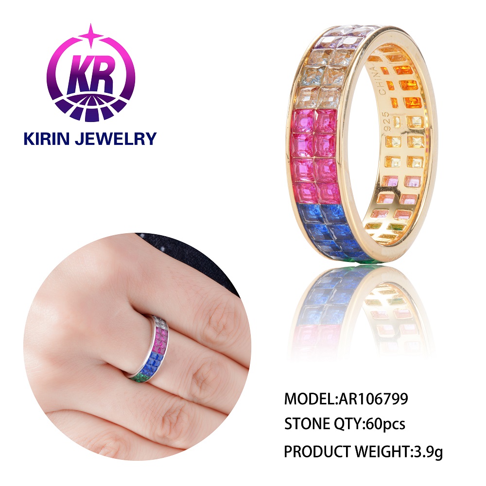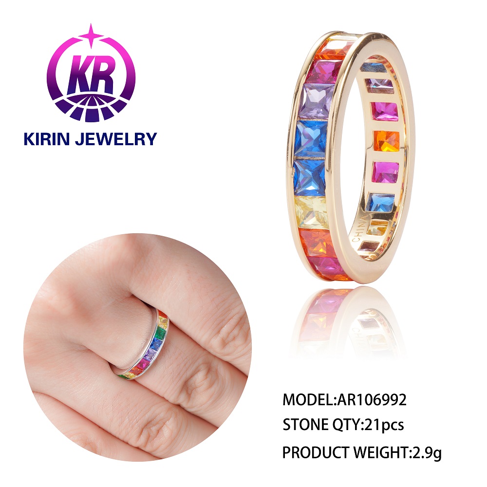 Kirin wholesale fashion rainbow rings for Women invisible setting 18K gold rainbow ring colorful Spi