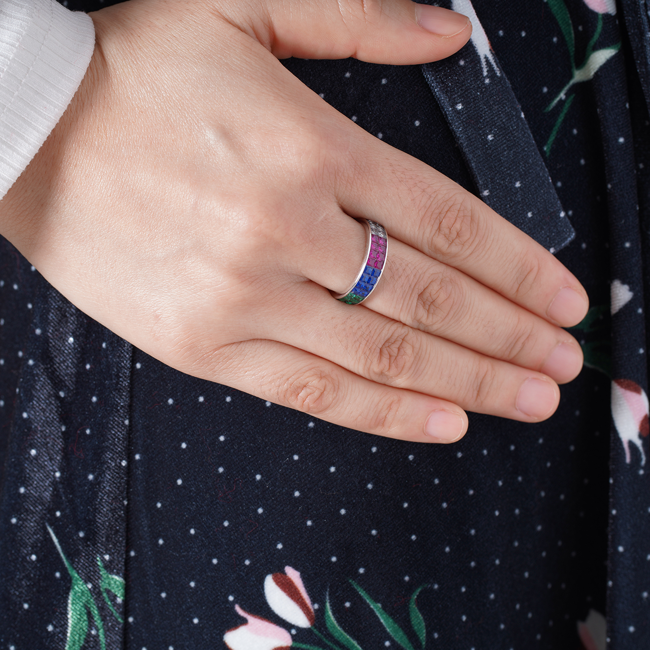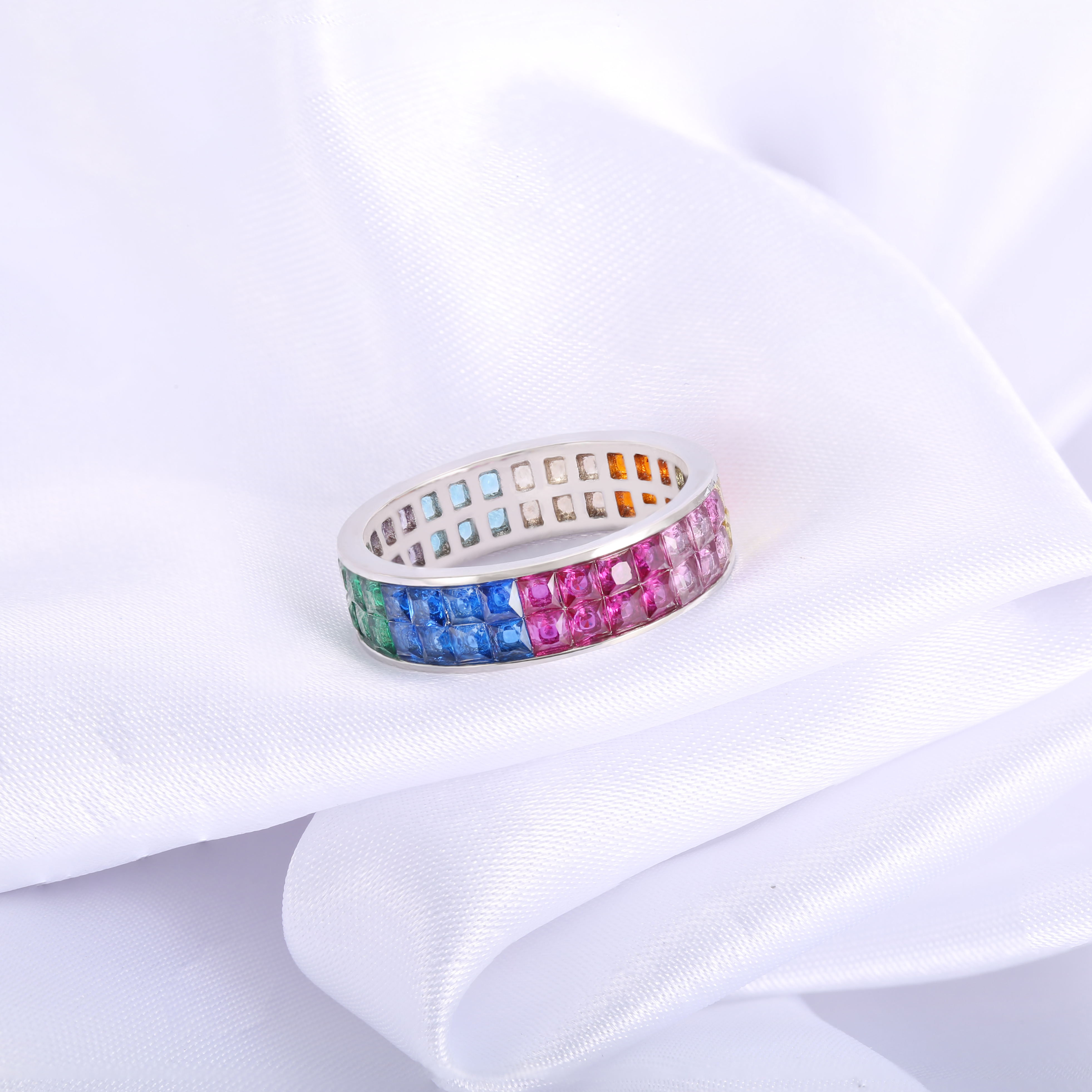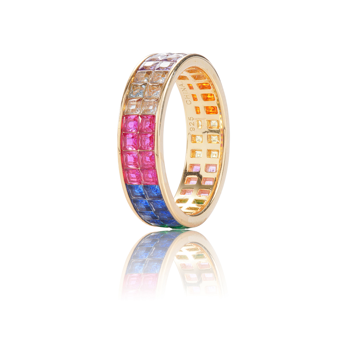 Kirin wholesale fashion rainbow rings for Women invisible setting 18K gold rainbow ring colorful Spi