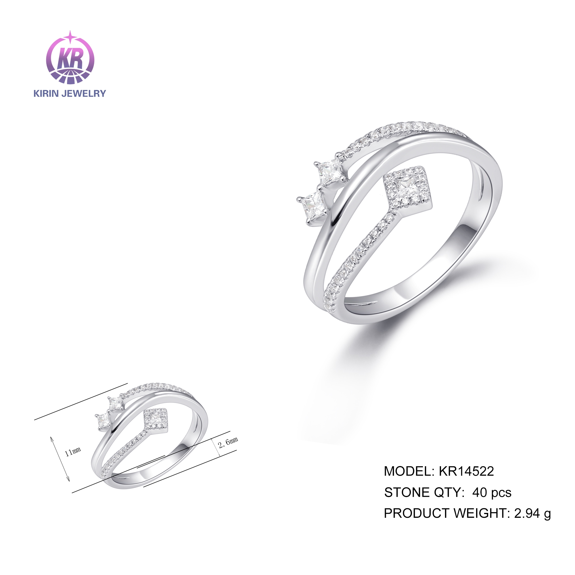 925 silver ring with rhodium plating cz 14522