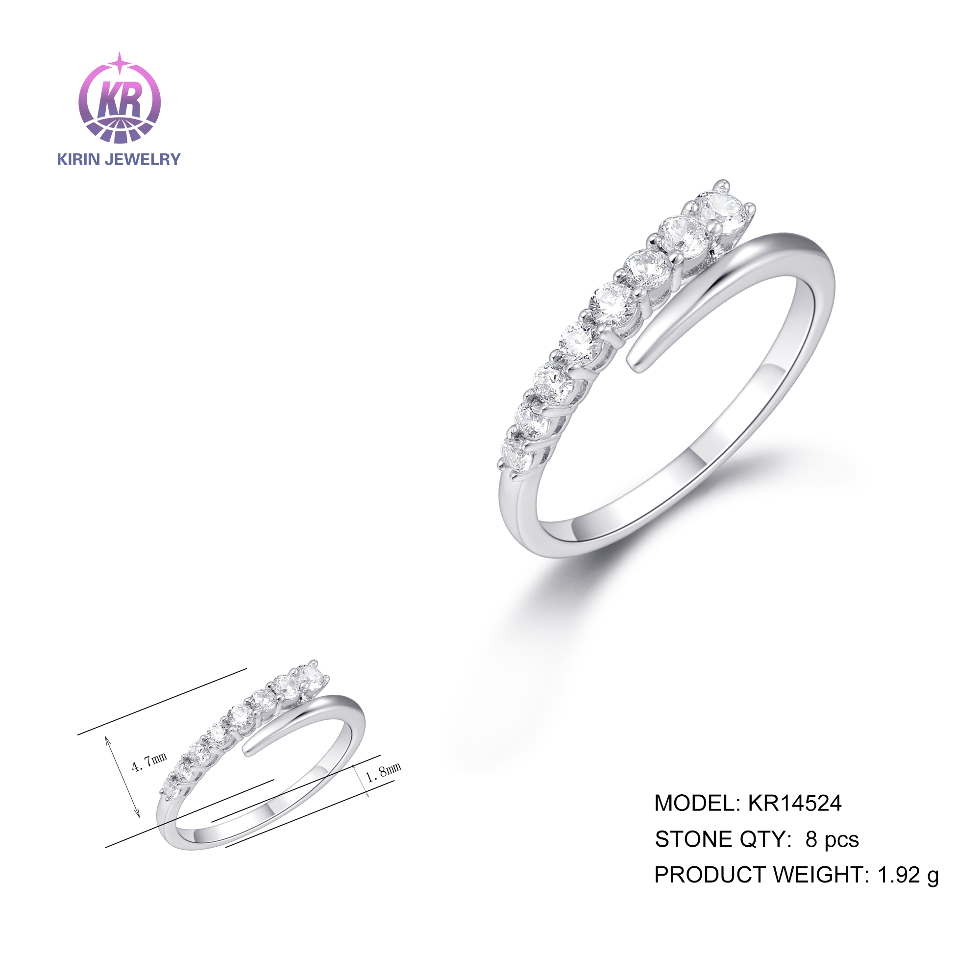 925 silver ring with rhodium plating cz 14524
