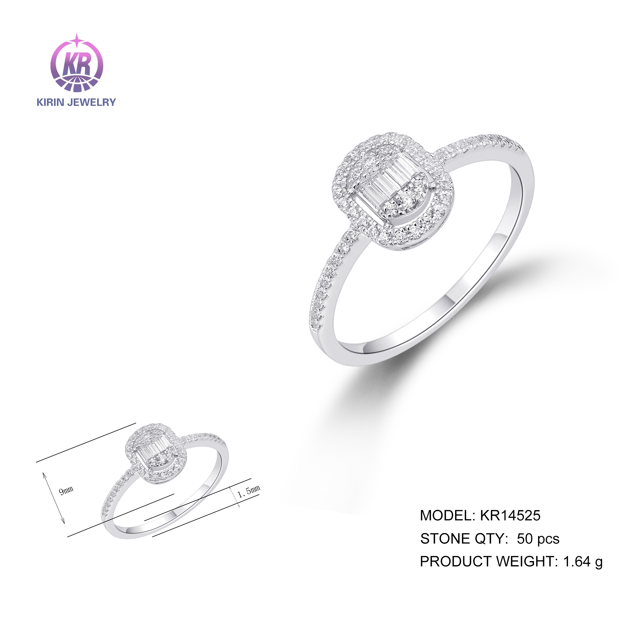 925 silver ring with rhodium plating cz 14525