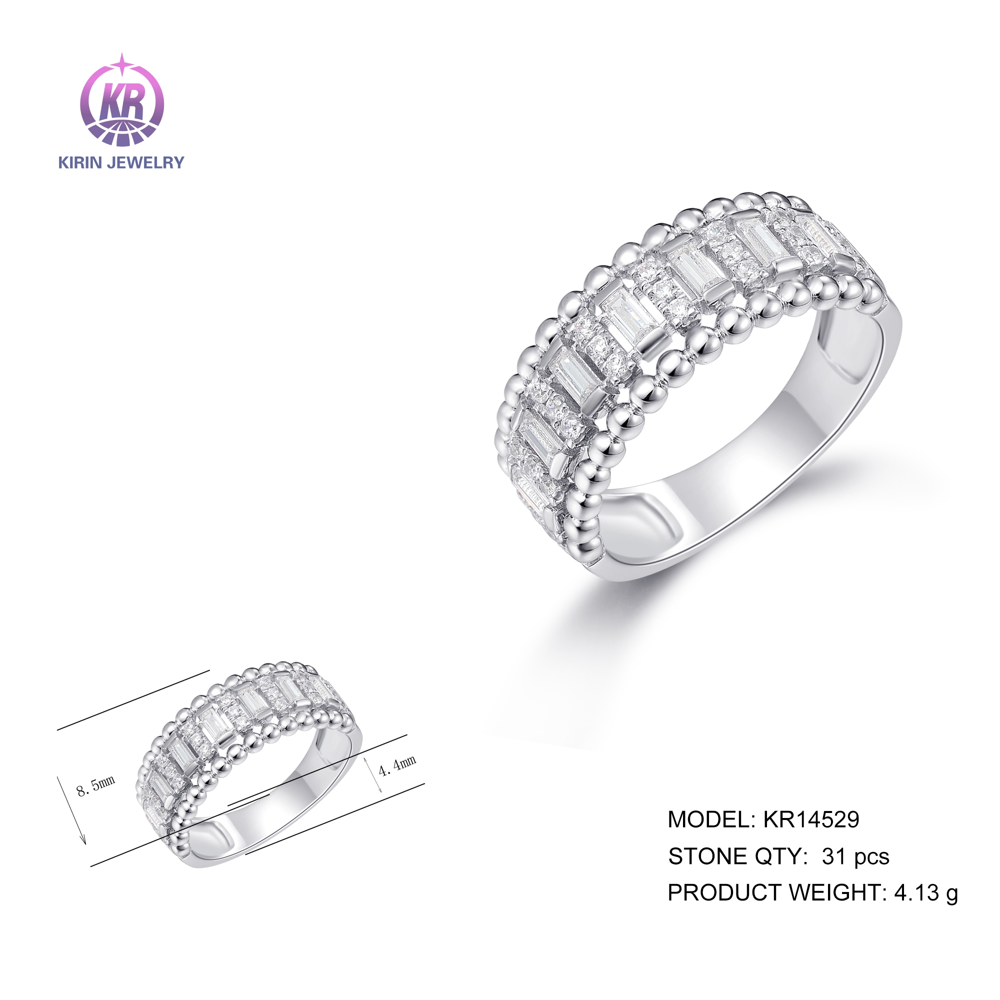 925 silver ring with rhodium plating cz 14529