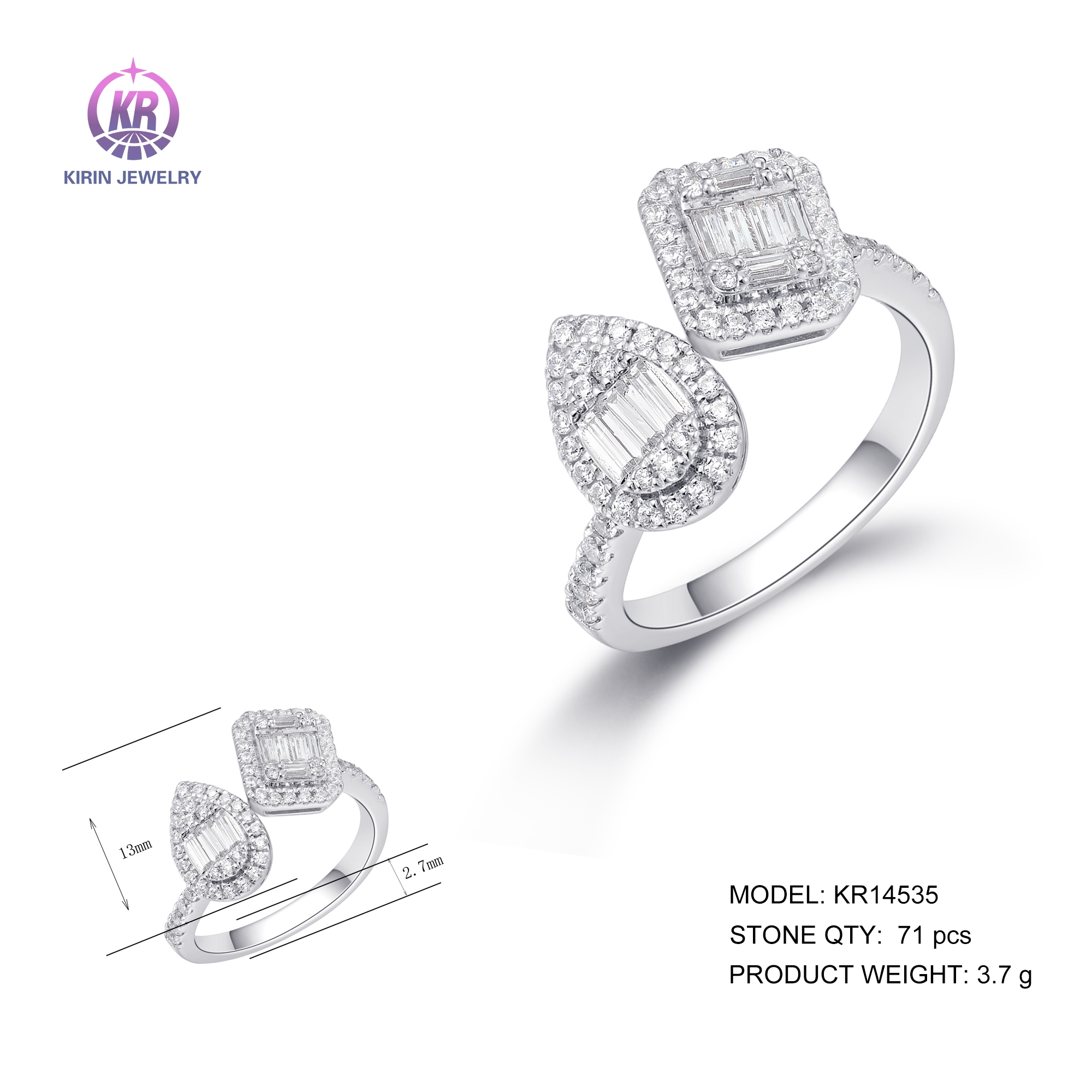 925 silver ring with rhodium plating cz 14535