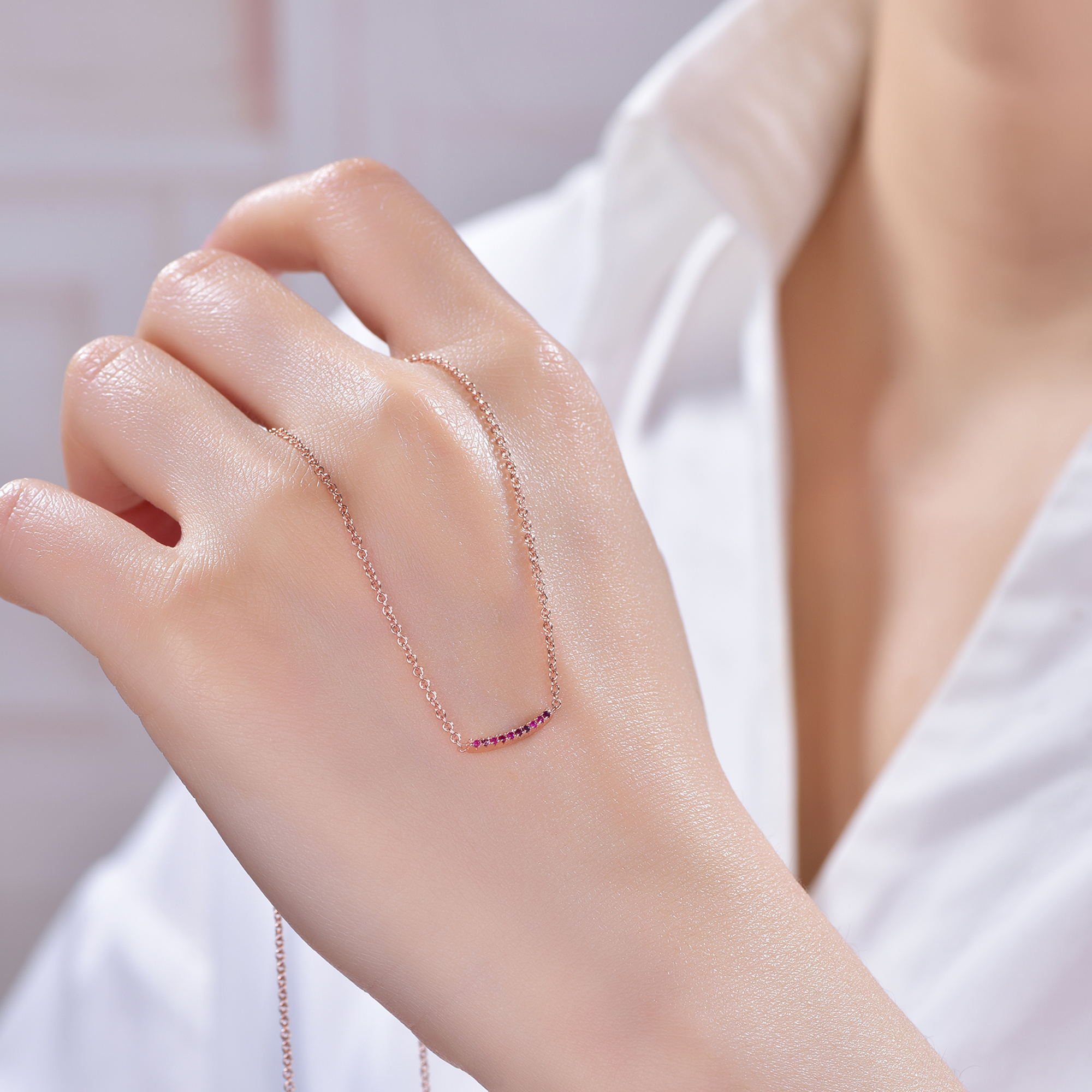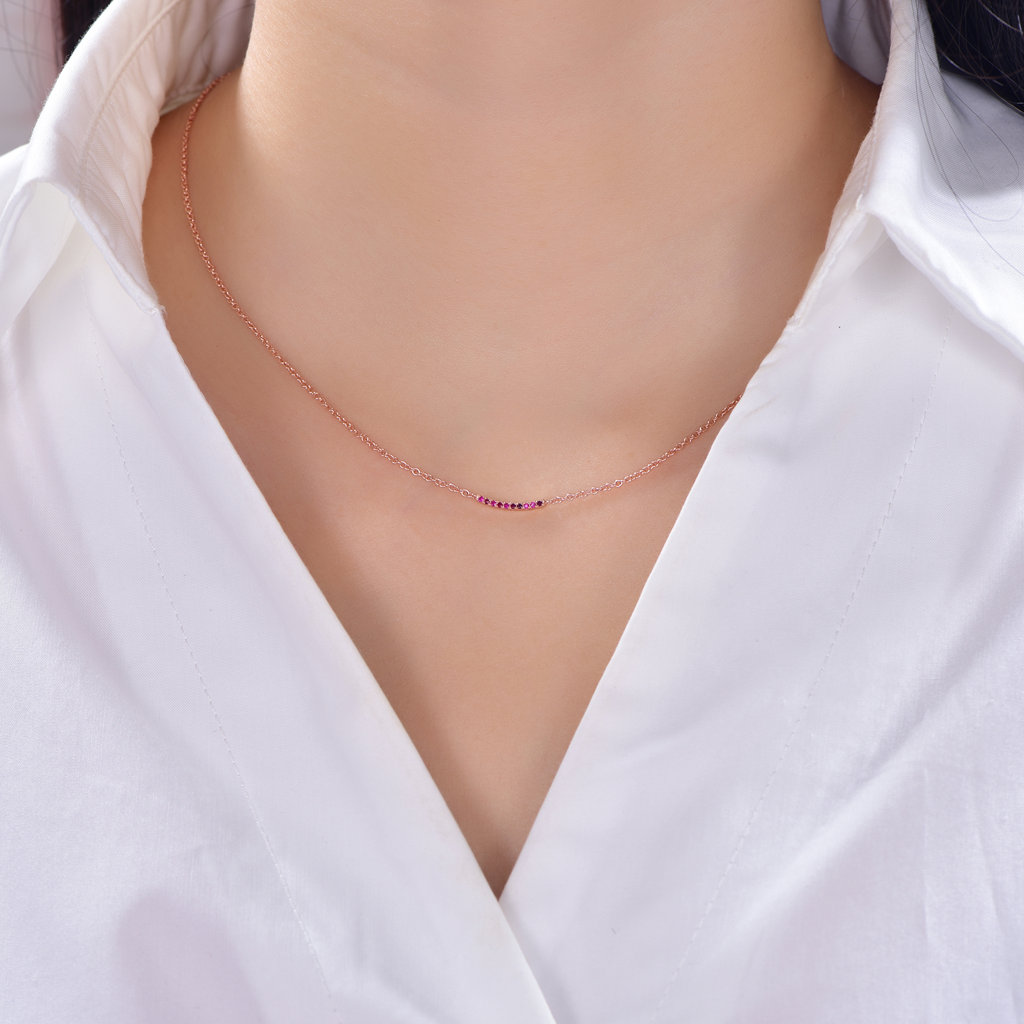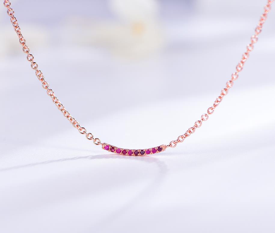 925 silver necklace with rose gold plating ruby CZ ANS70642