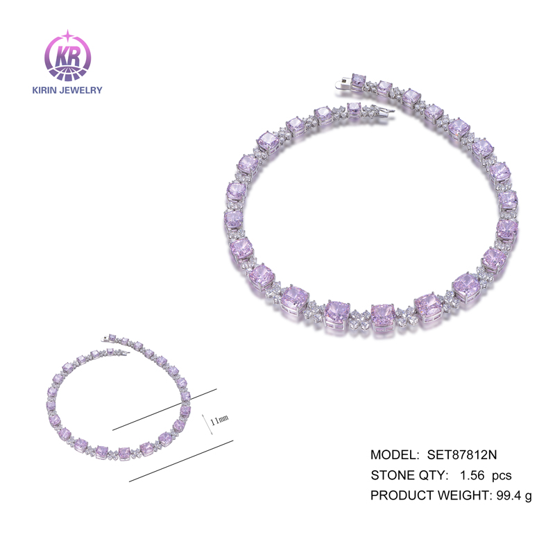 925 silver necklace with rhodium plating pink CZ SET87812N