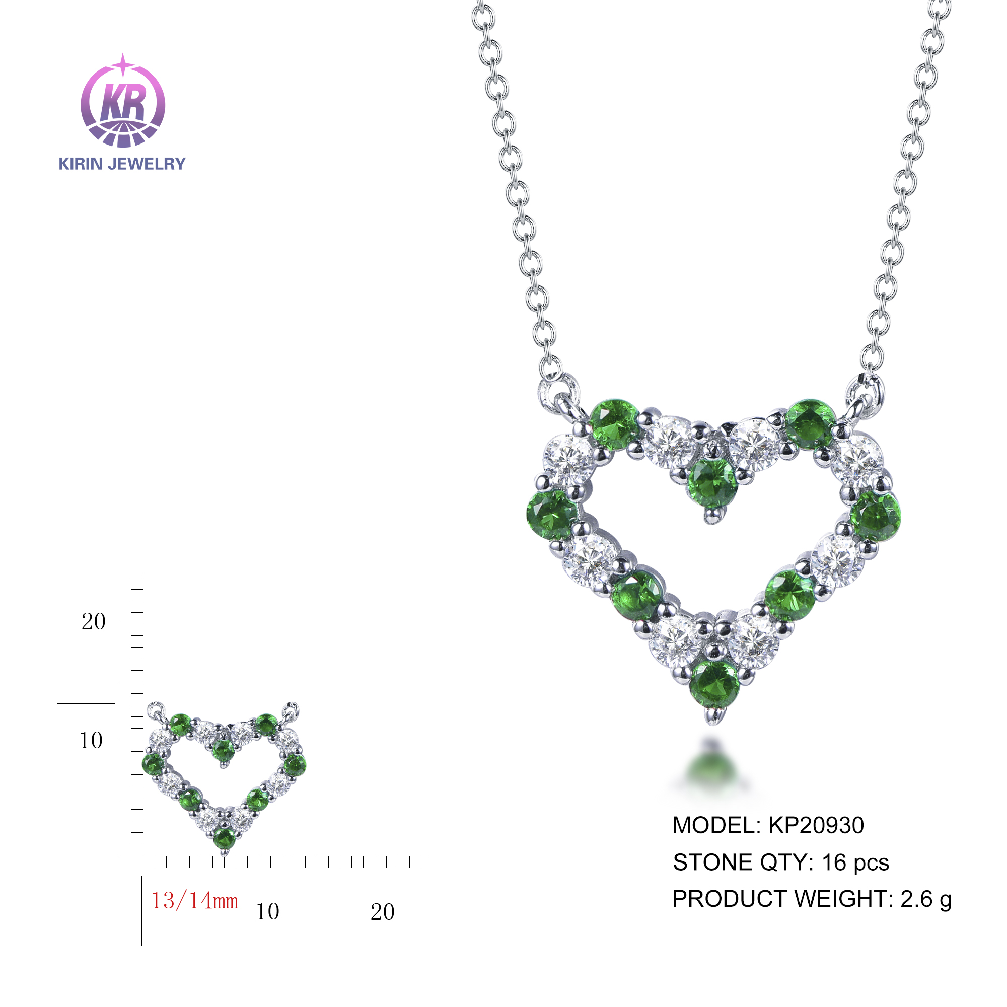 heart pendant with rhodium plating emerald CZ KP20930
