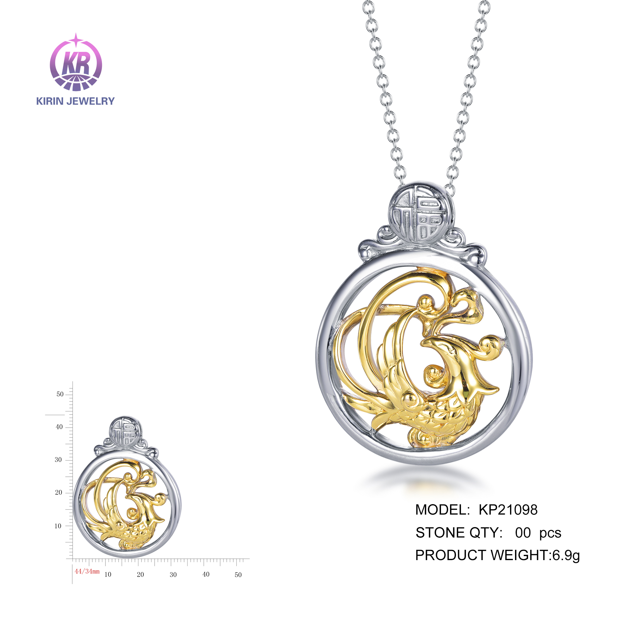 925 silver pendant with 2-tone plating rhodium and 14K gold KP21098