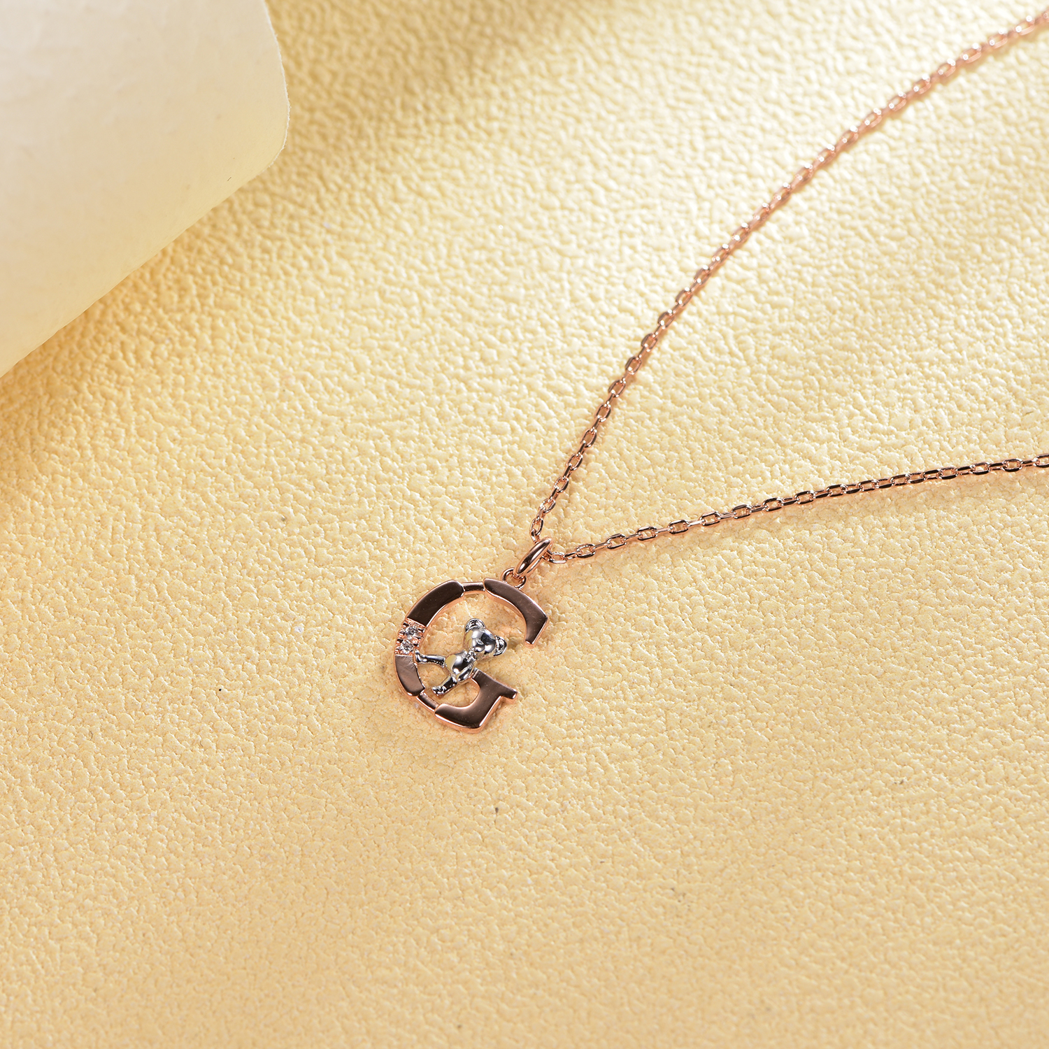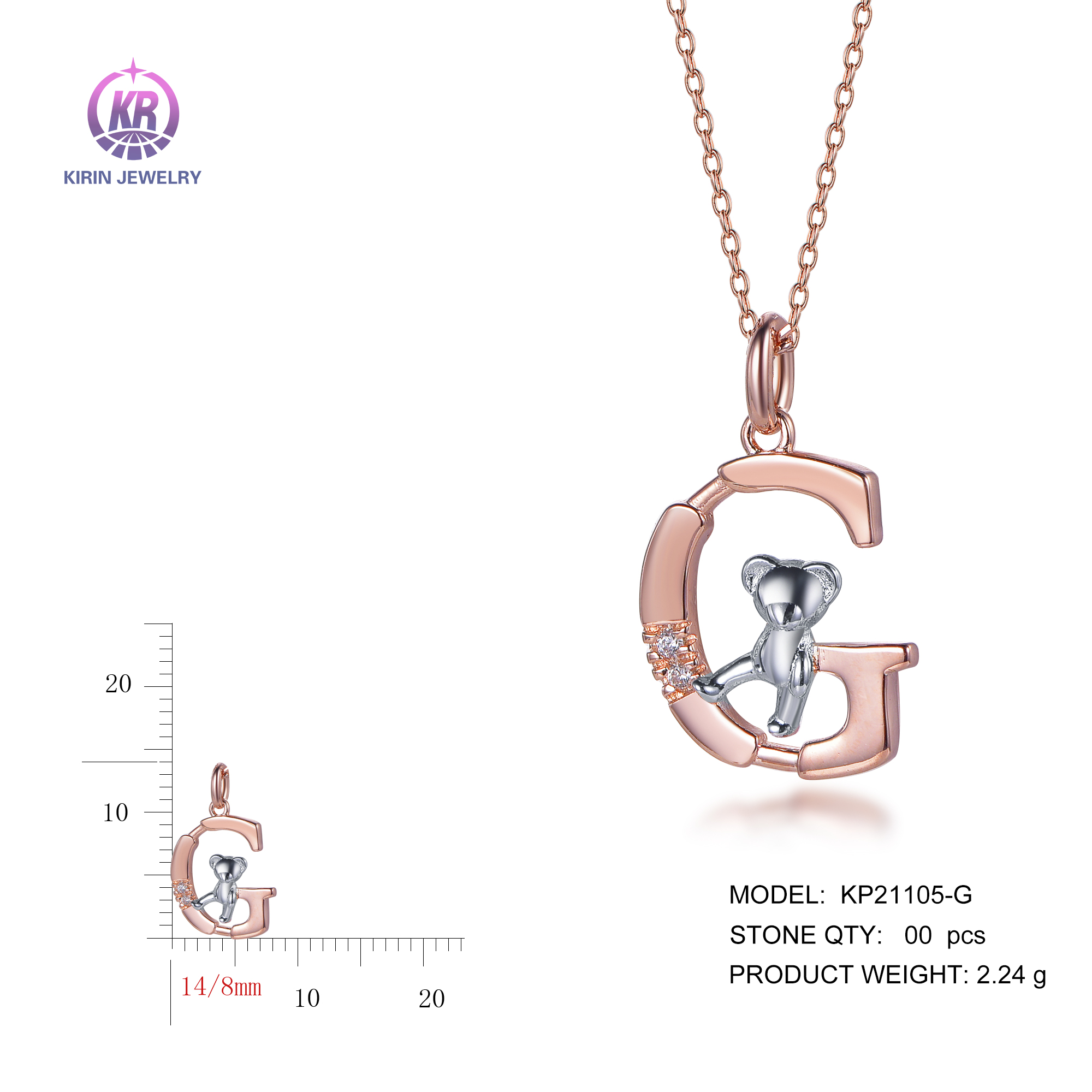 bear pendant with 2-tone plating rhodium and rose gold CZ KP21105-G