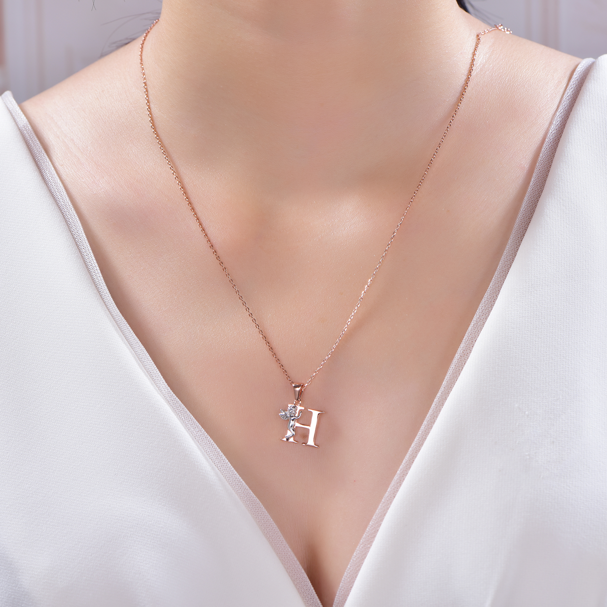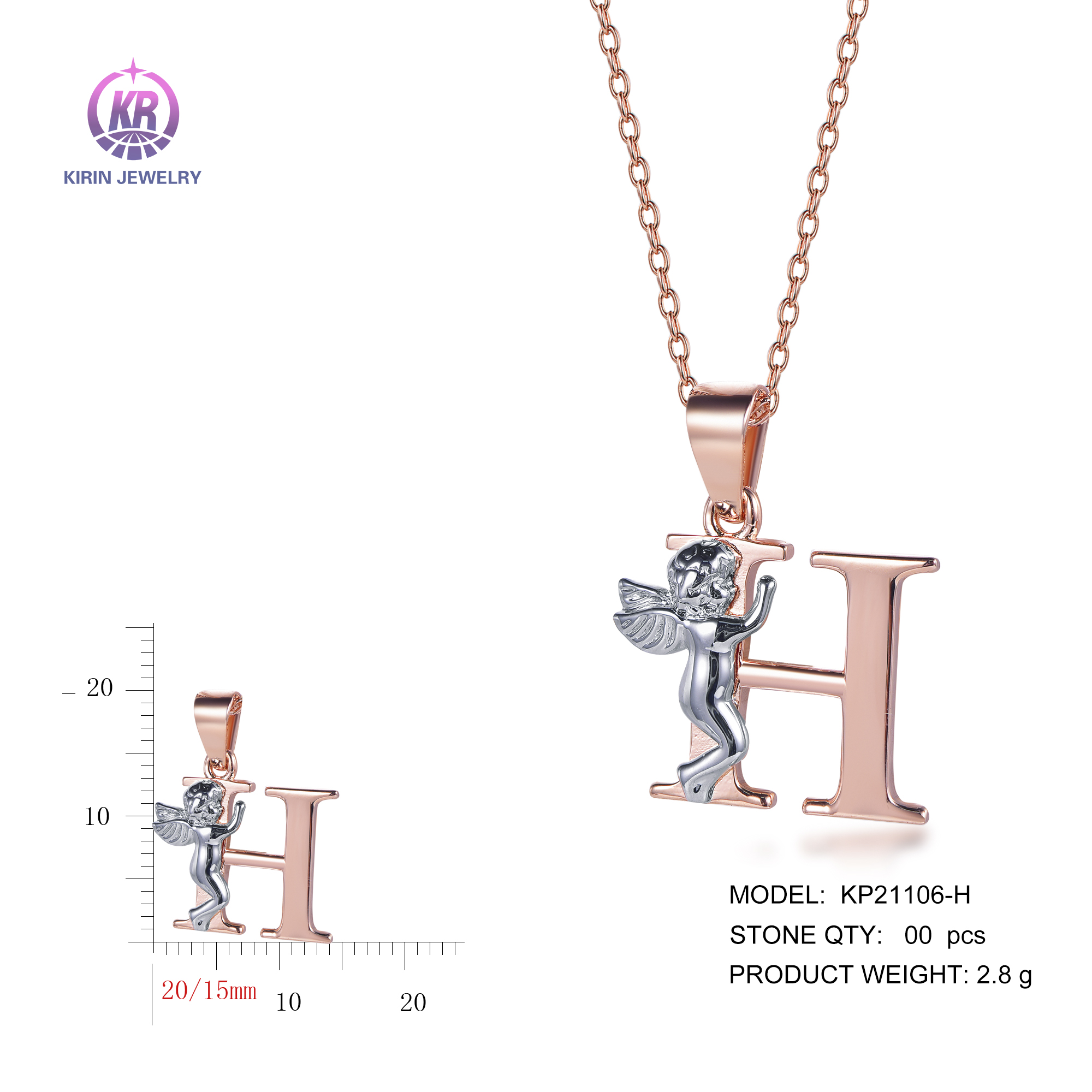 angel pendant with 2-tone plating rhodium and rose gold KP21106-H