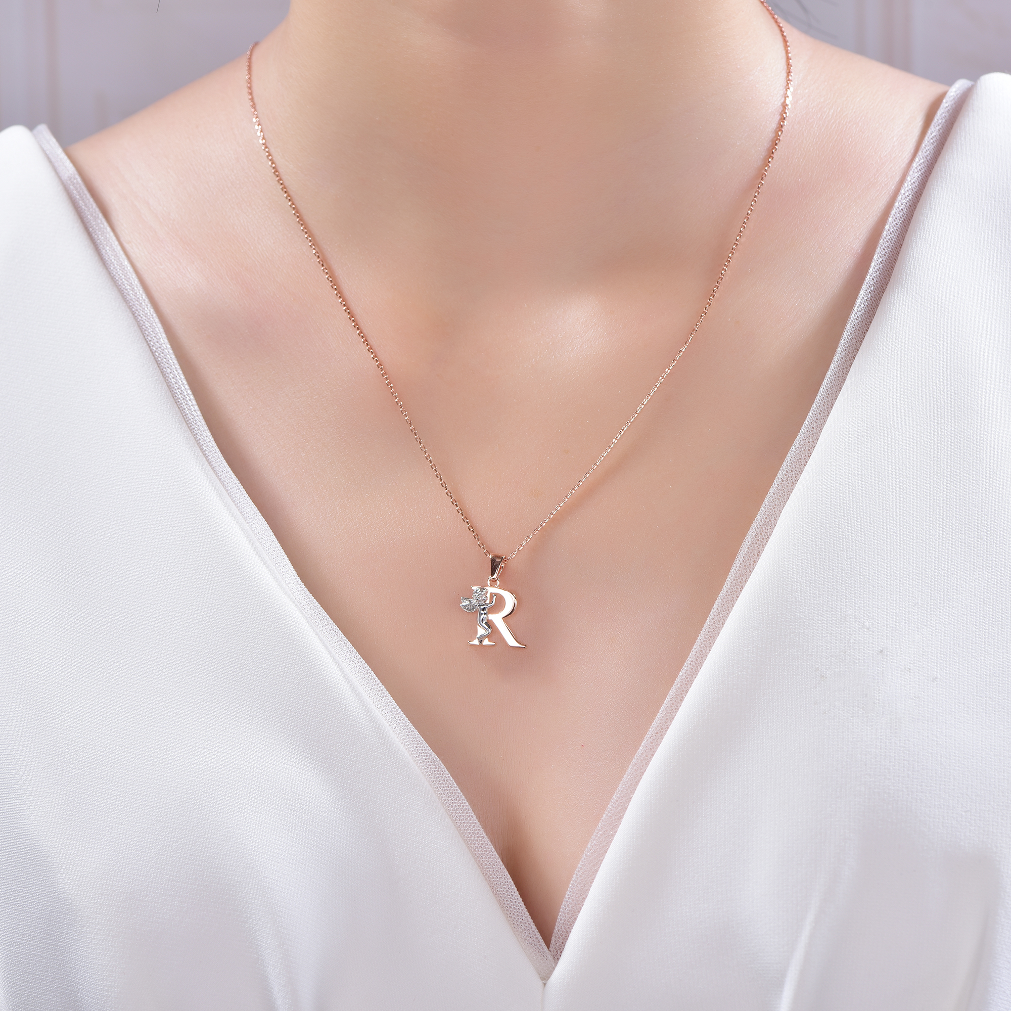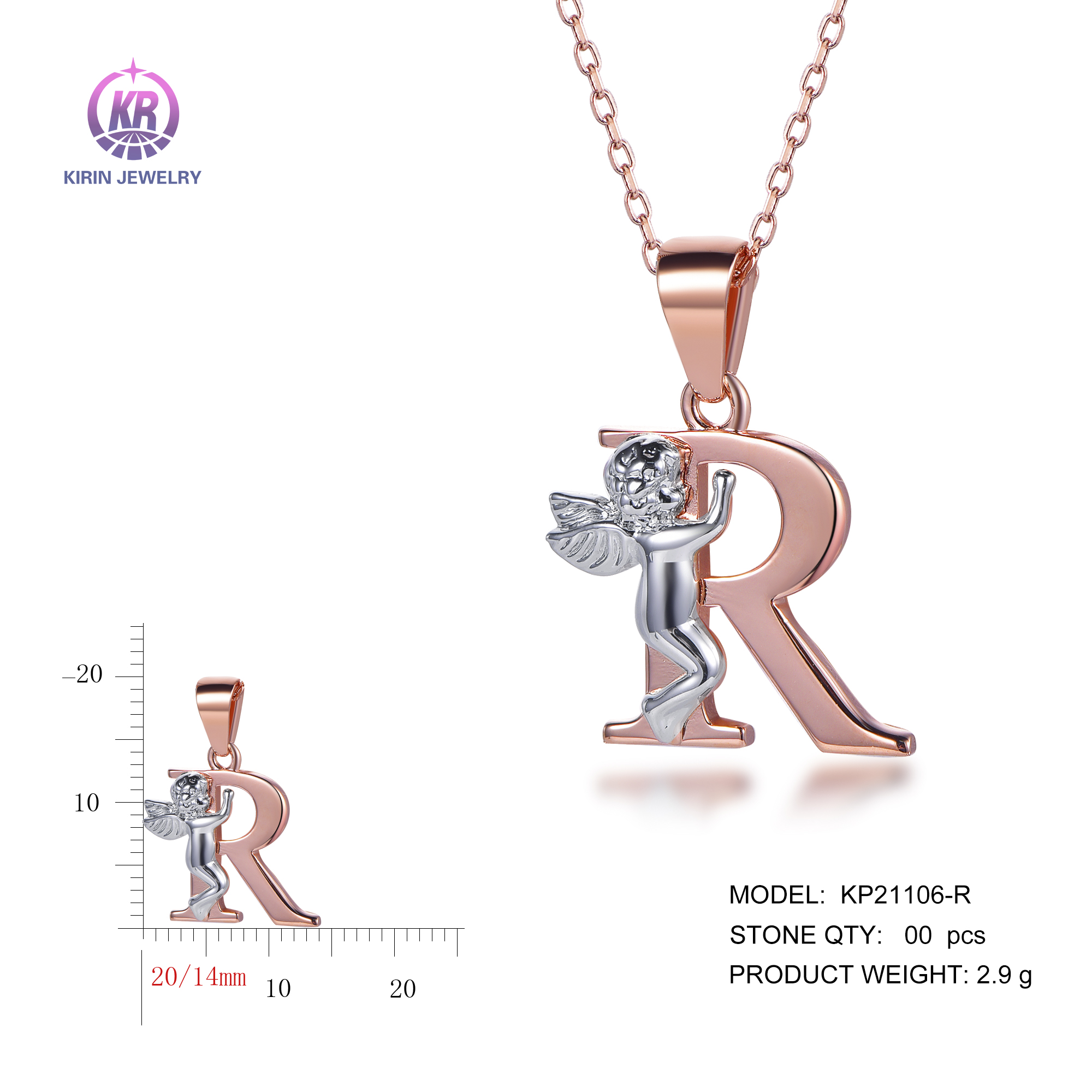 angel pendant with 2-tone plating rhodium and rose gold KP21106-R