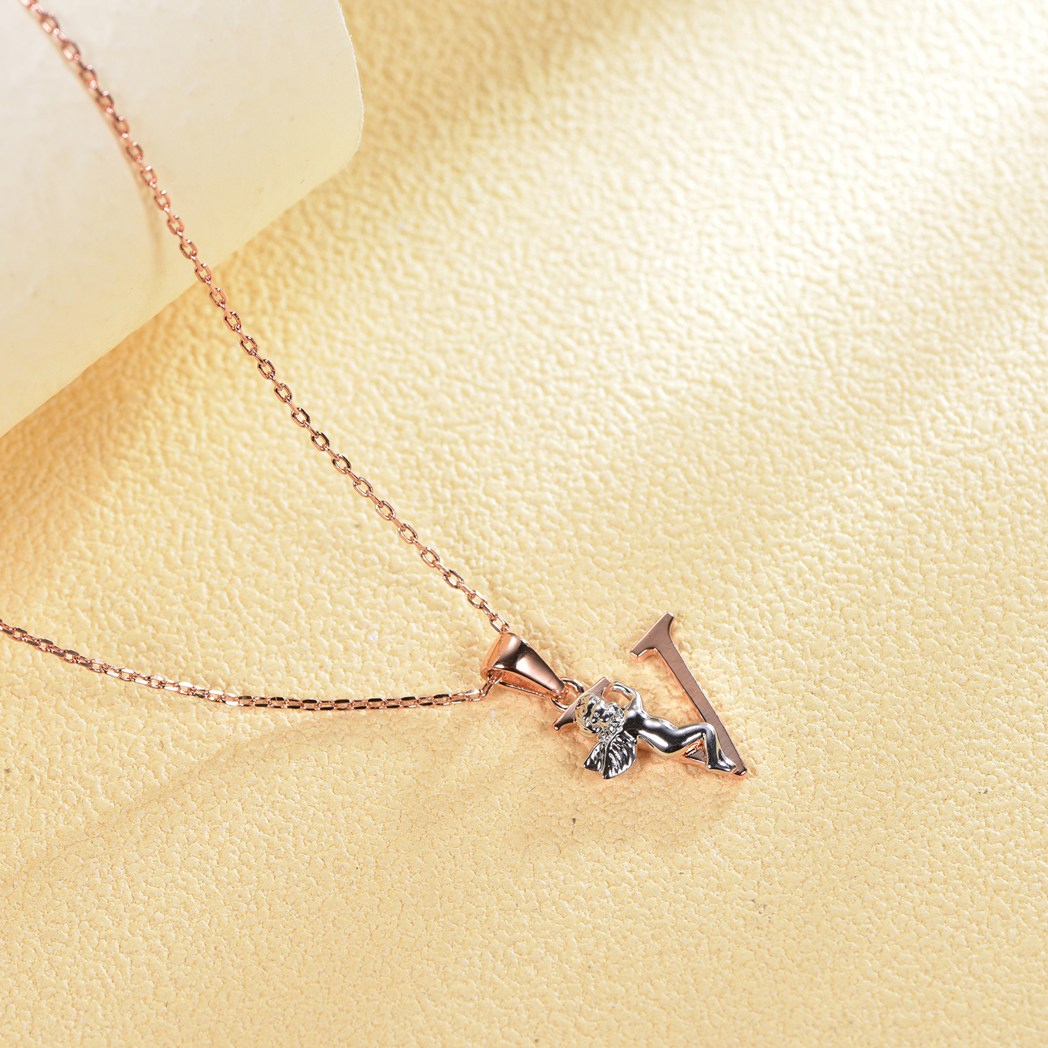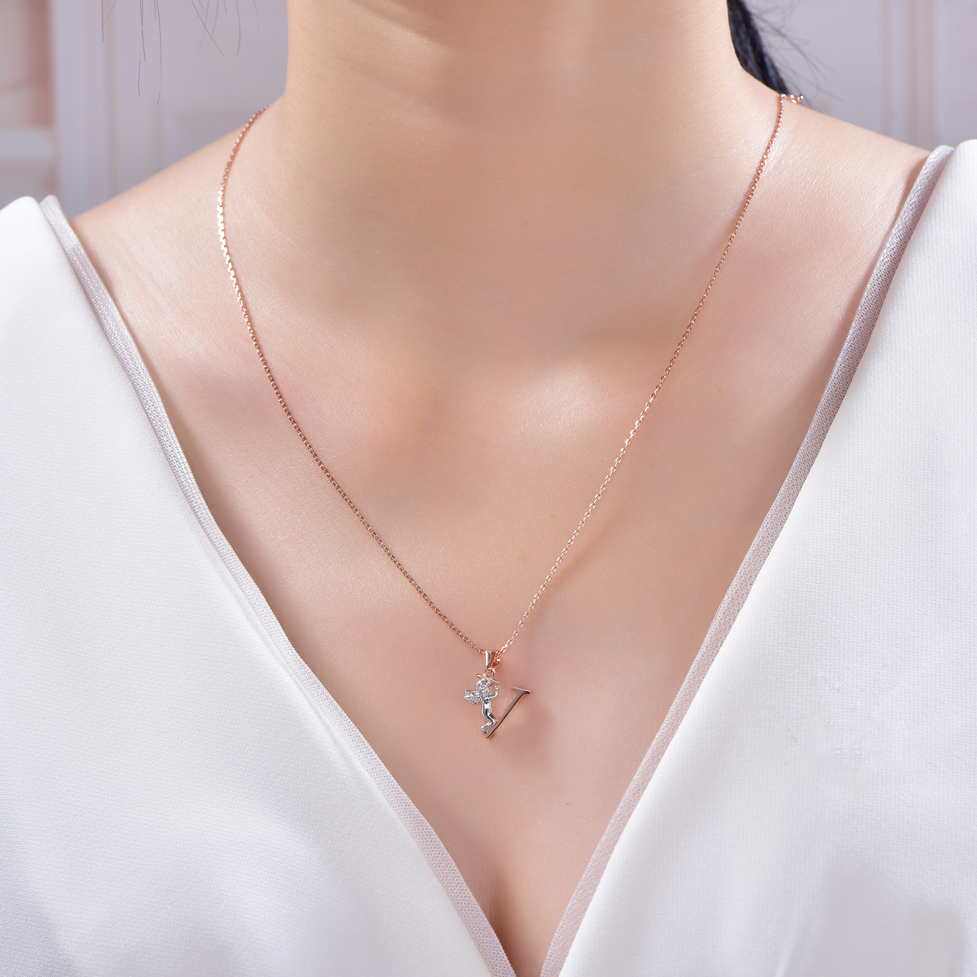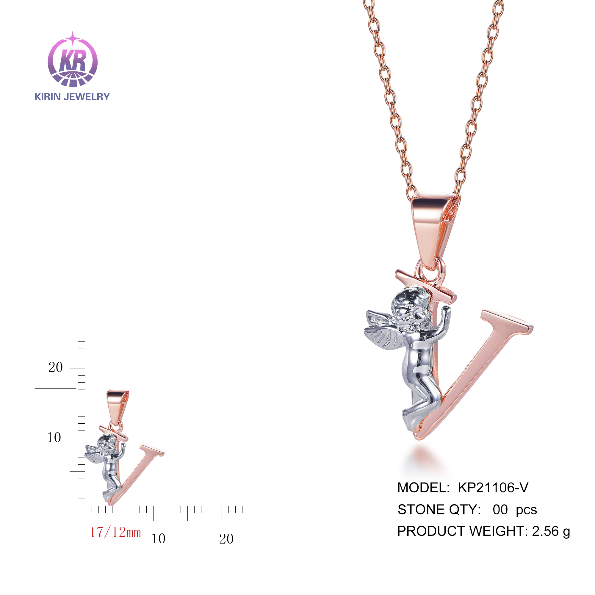 angel pendant with 2-tone plating rhodium and rose gold KP21106-V