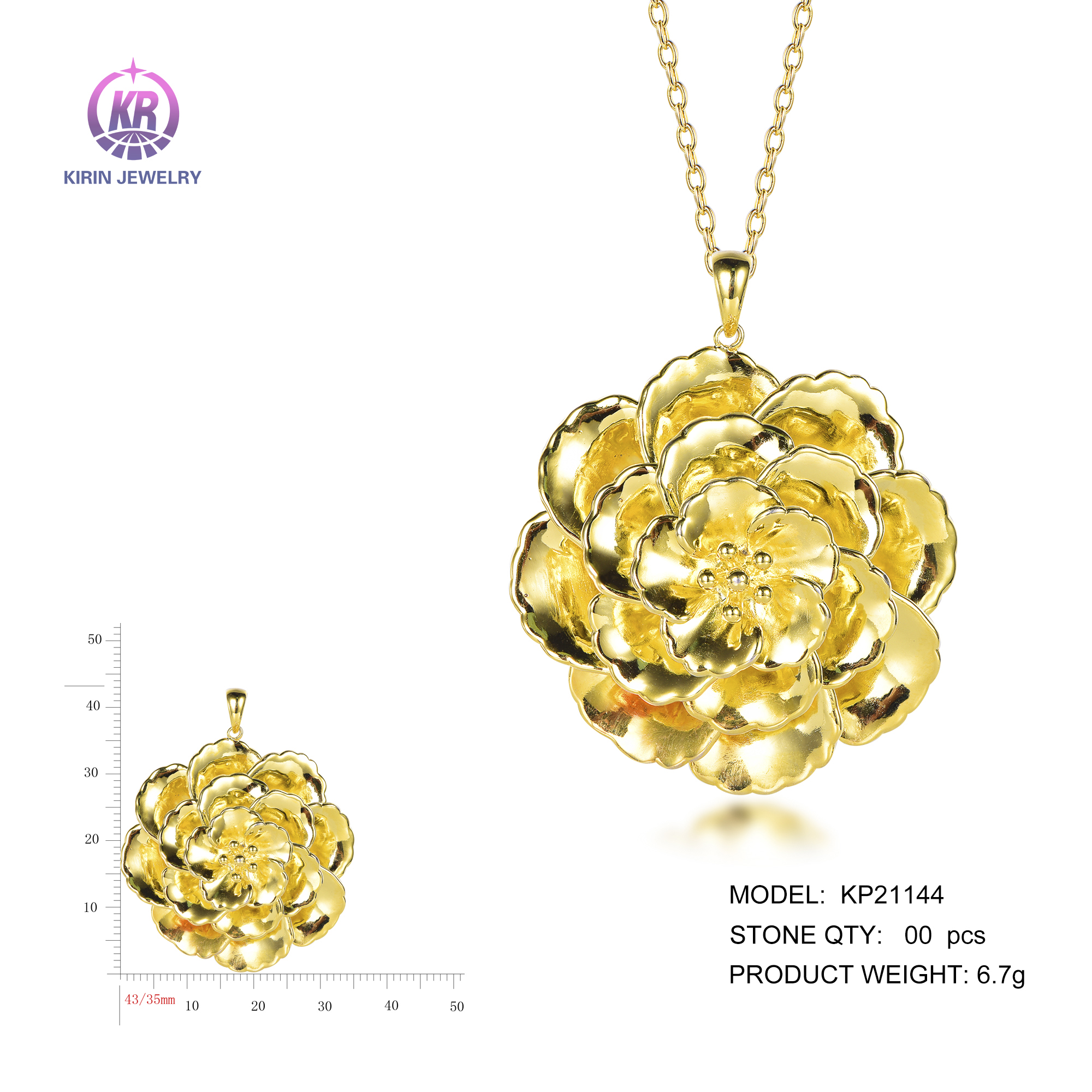 flower pendant with 14K gold plating KP21144
