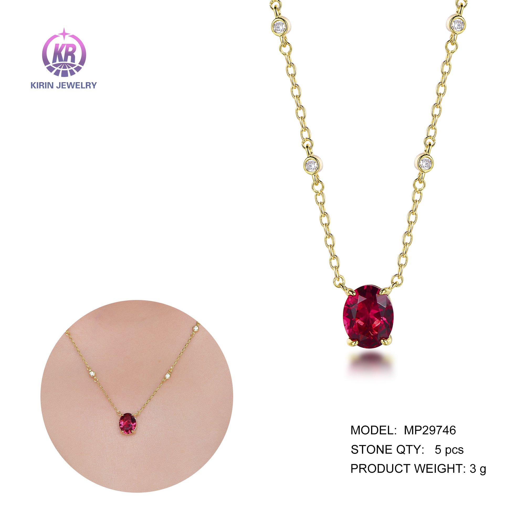 925 silver pendant with 14K gold plating ruby CZ 29746