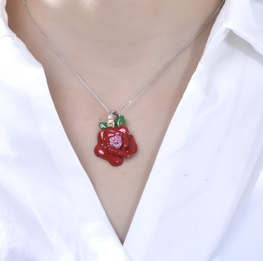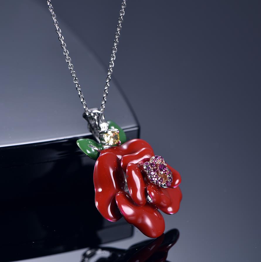 flower pendant with rhodium plating CZ SET84425PW