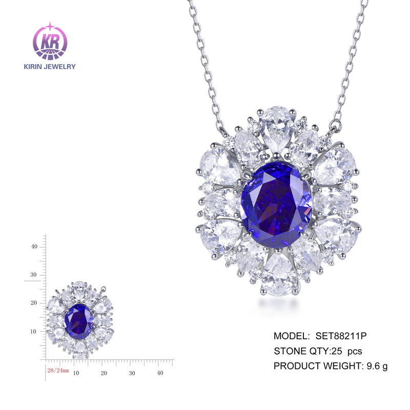 925 silver pendant with rhodium plating sapphire CZ SET88211P (2)