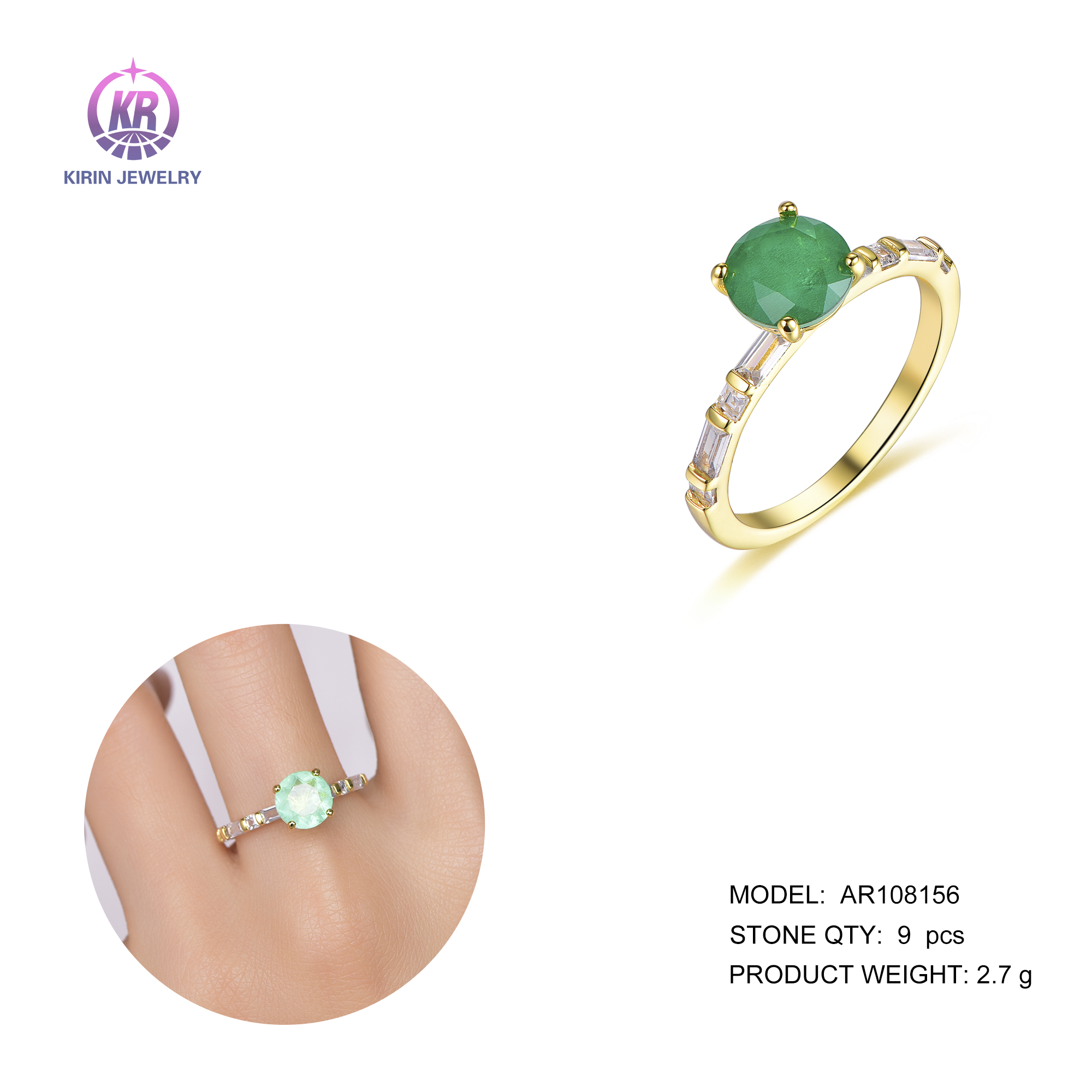 925 silver ring with 14K gold plating emerald CZ 108156