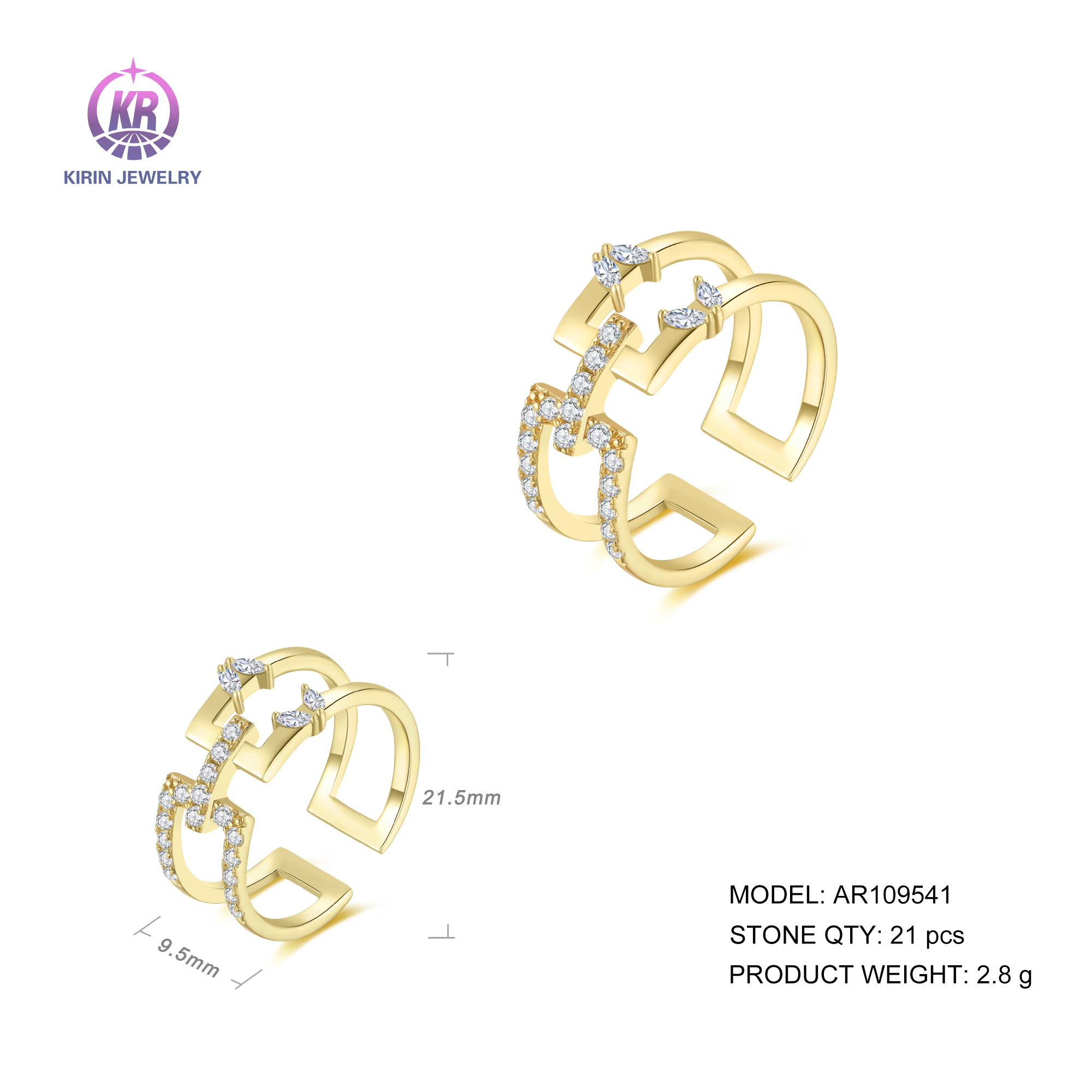 925 silver rings with 14K gold plating CZ AR109541-1