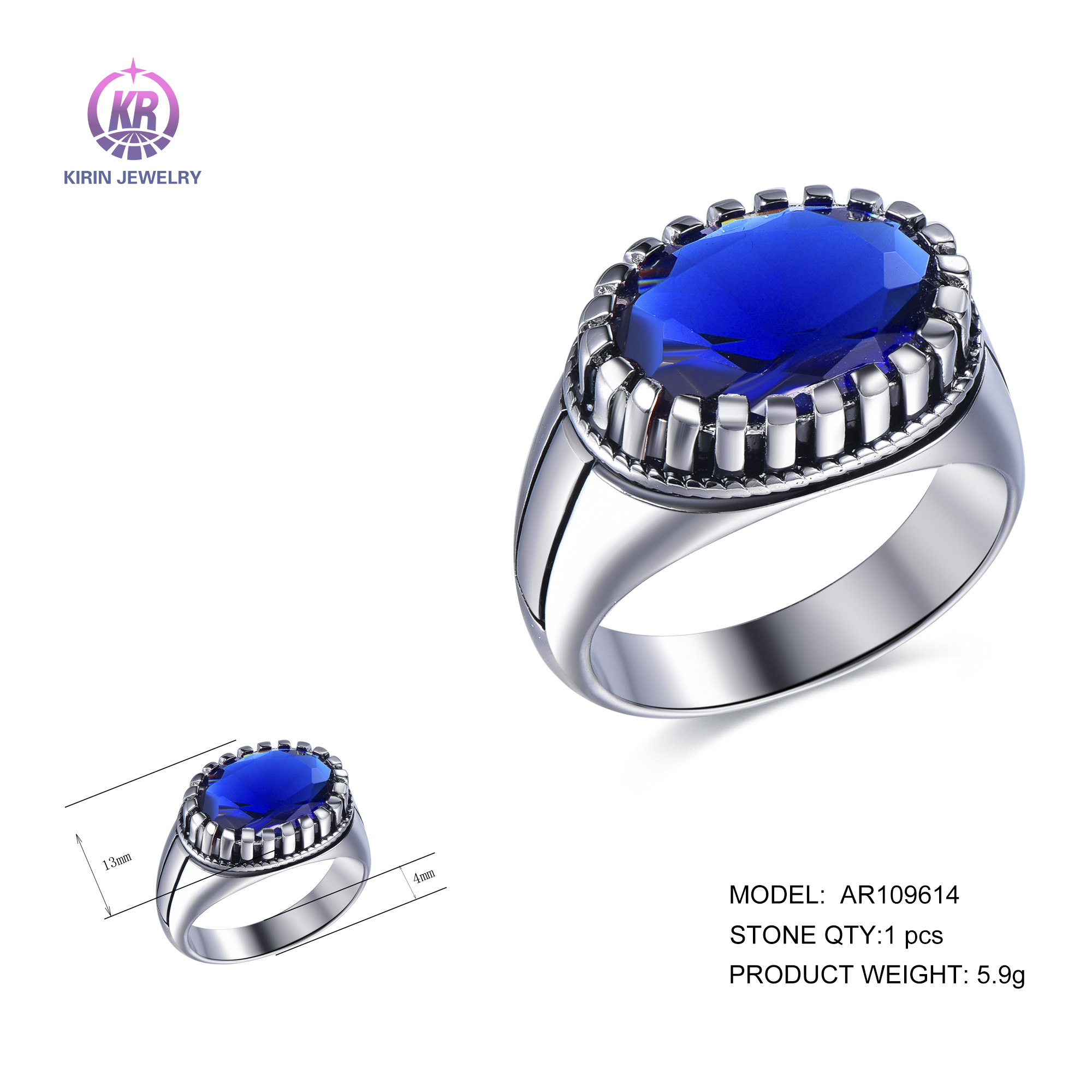 925 silver rings with rhodium plating sapphire CZ AR109614
