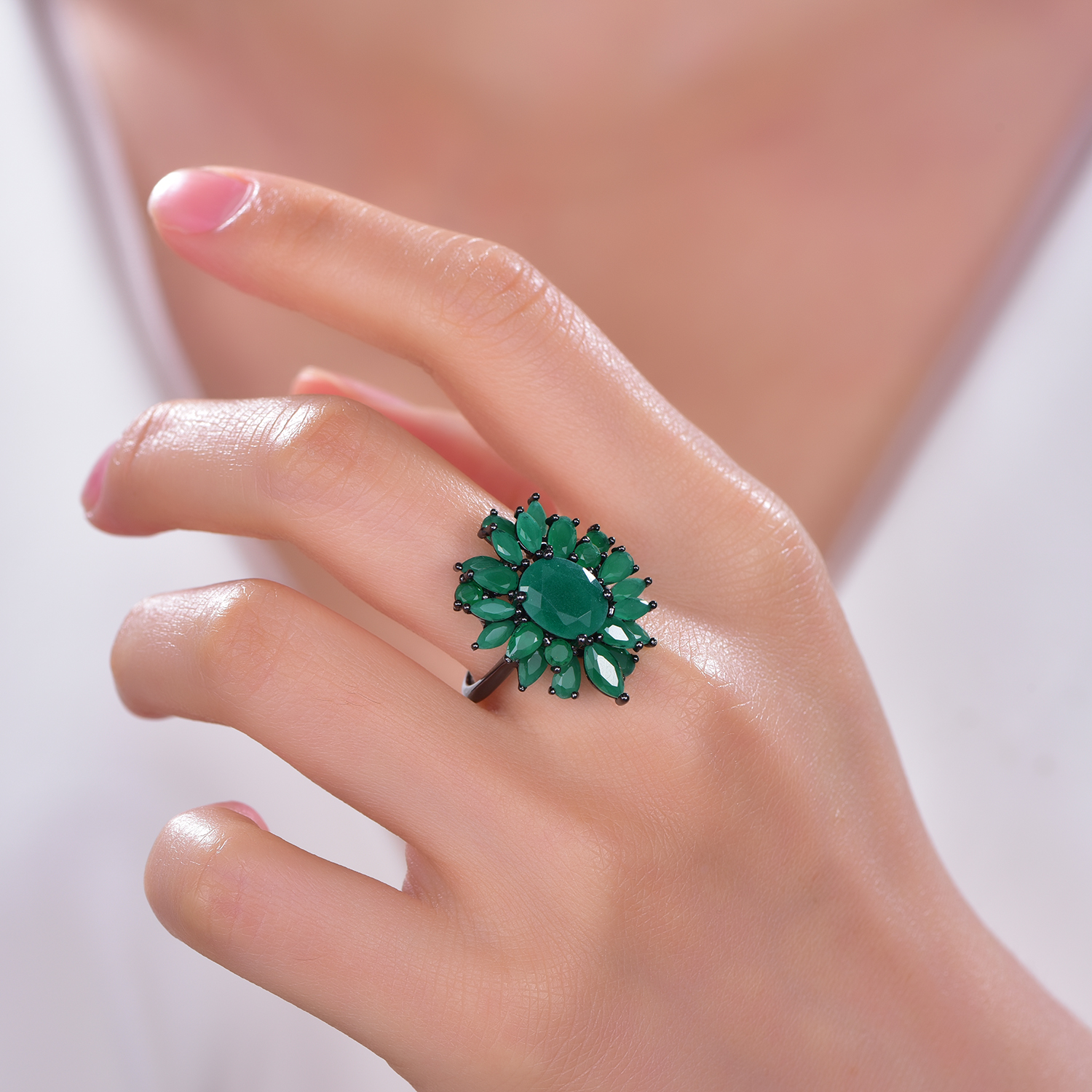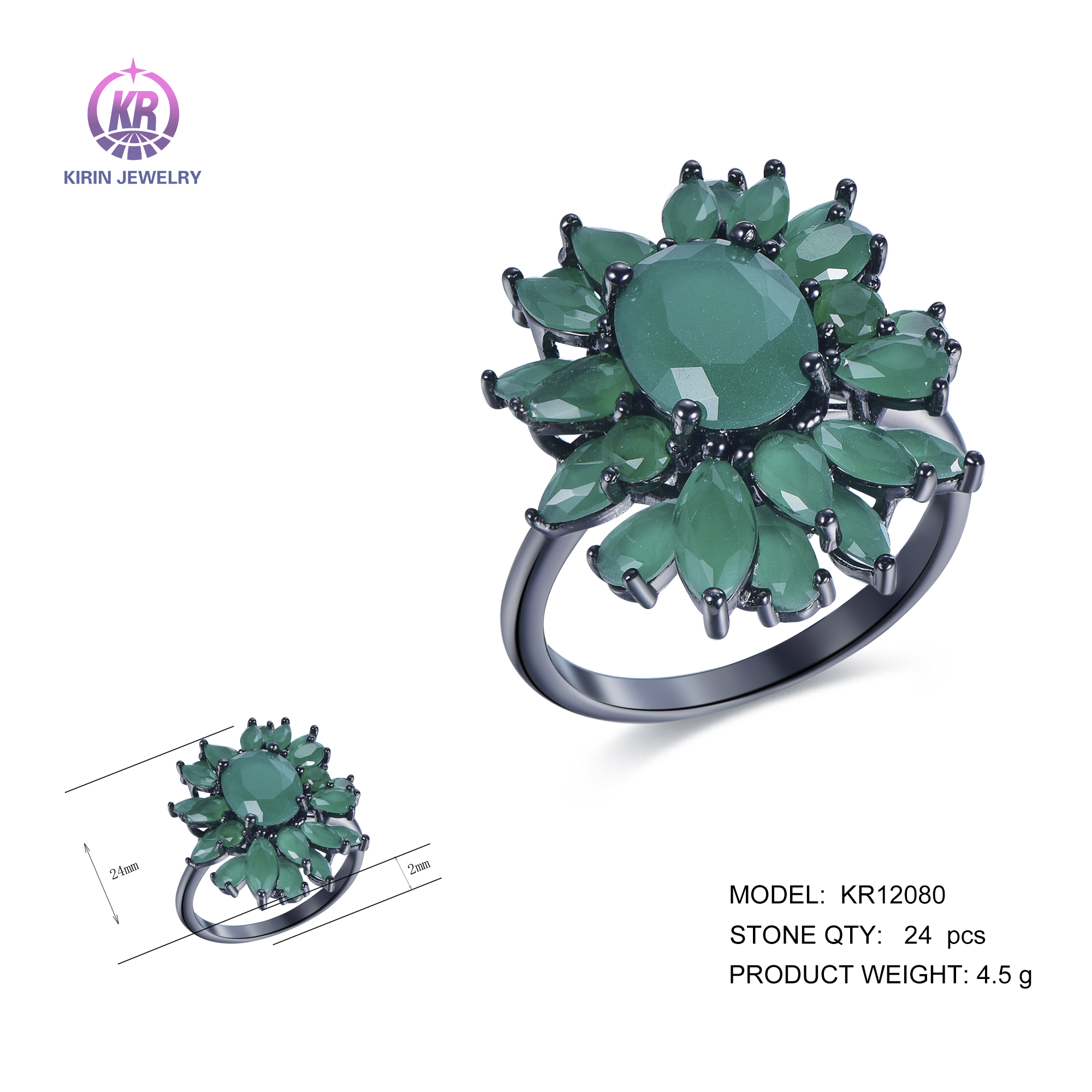 flower rings with black rhodium plating emerald CZ KR12080