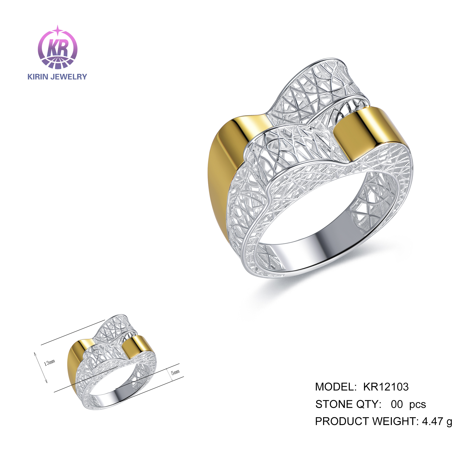 925 silver rings with 14K gold plating /rhodium plating KR12103