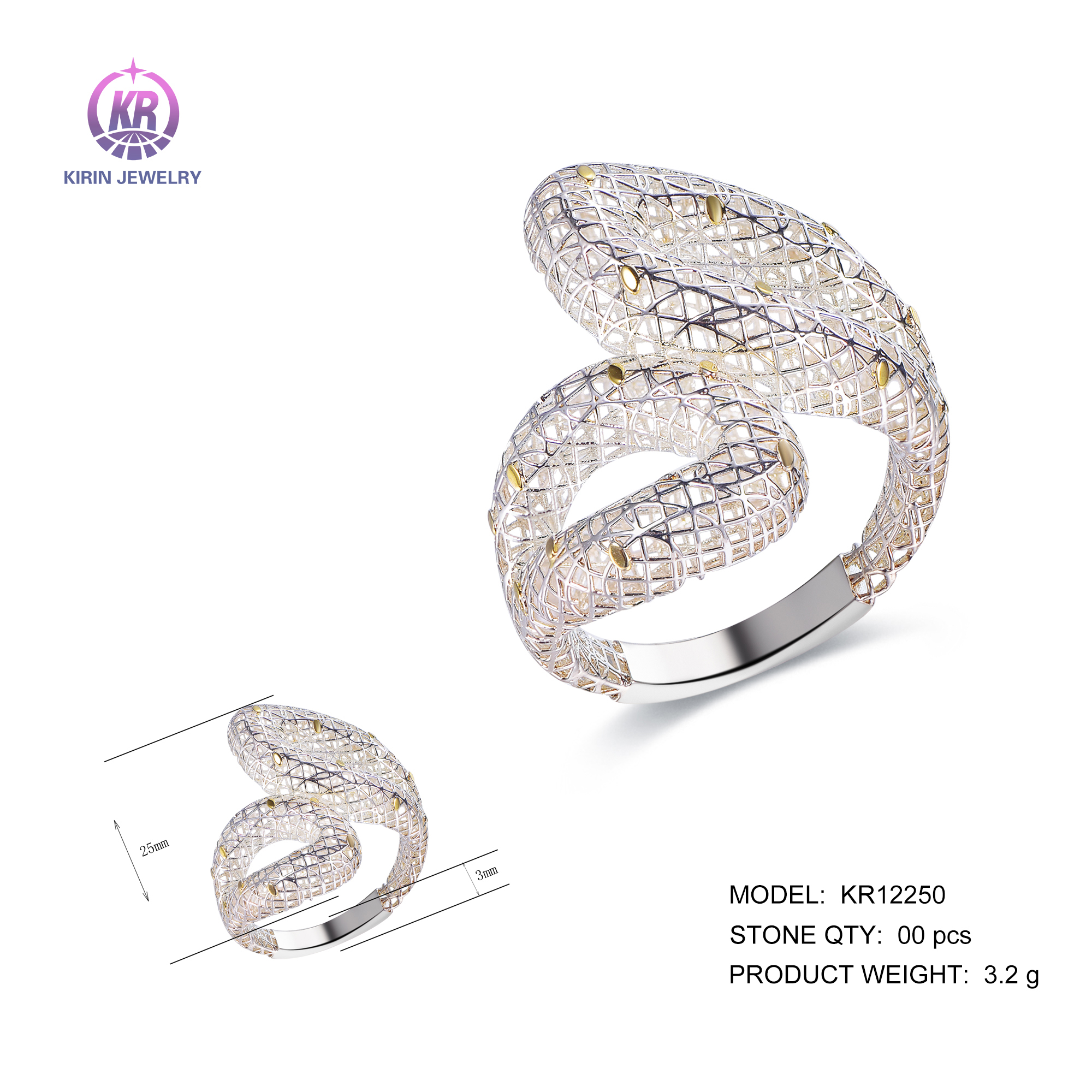 925 silver rings with 2-tone plating rhodium and 14K gold KR12250