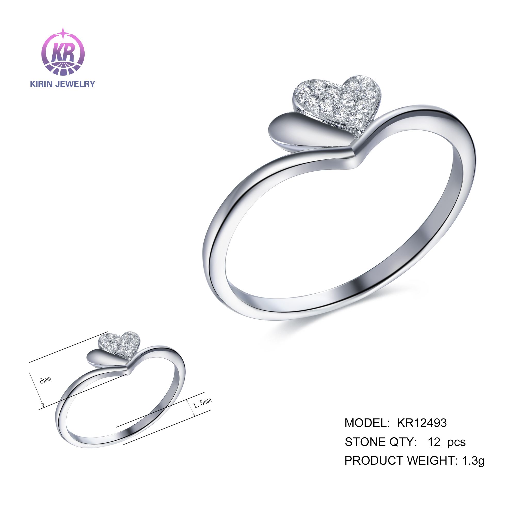 925 silver rings with rhodium plating CZ KR12493